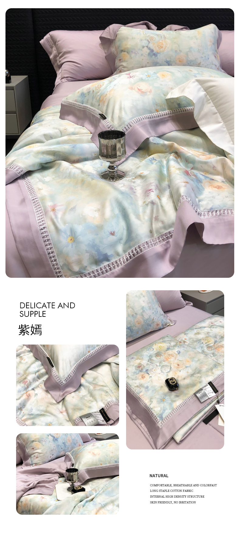 黑白森林2024款 60S支兰精天丝数码印花四件套,朝颜,木槿,玉茗,春浅,京墨,半夏,丹若,繁缕,青黛,德琳-粉,德琳-绿,蒂娜-灰,蒂娜-紫,慧莉-粉,慧莉-绿,欧瑞,夏夜