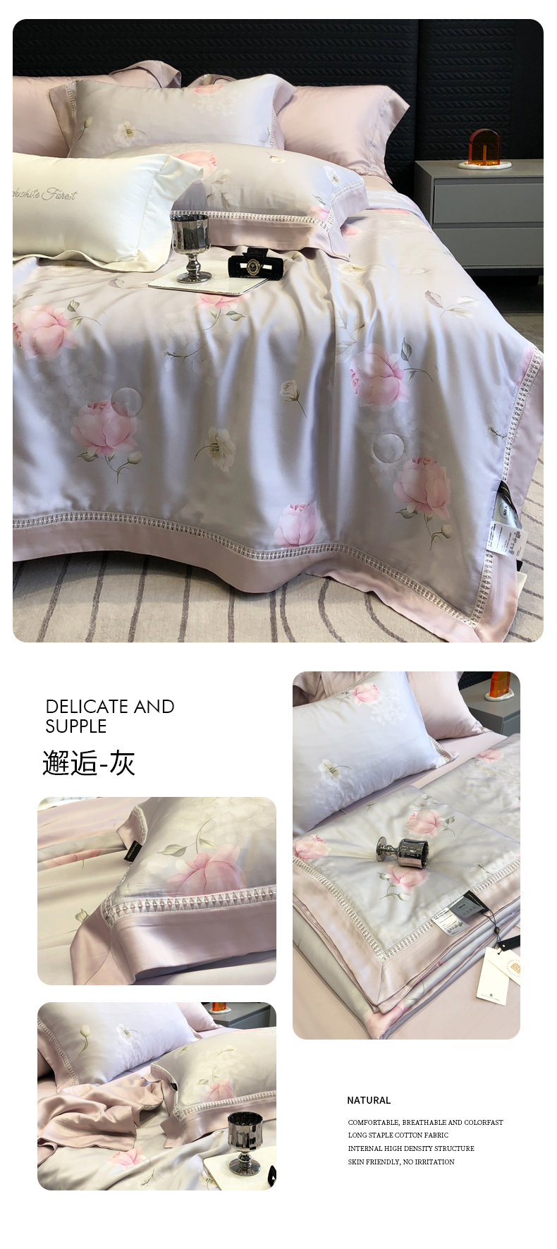 (总)黑白森林 2026新款天丝印花夏被四件套系列,邂逅-粉,邂逅-灰,云馥-粉,云馥-紫,紫嫣
