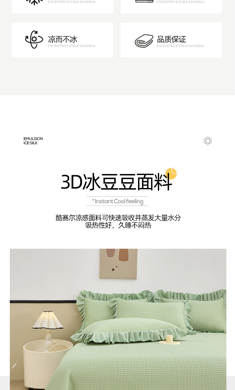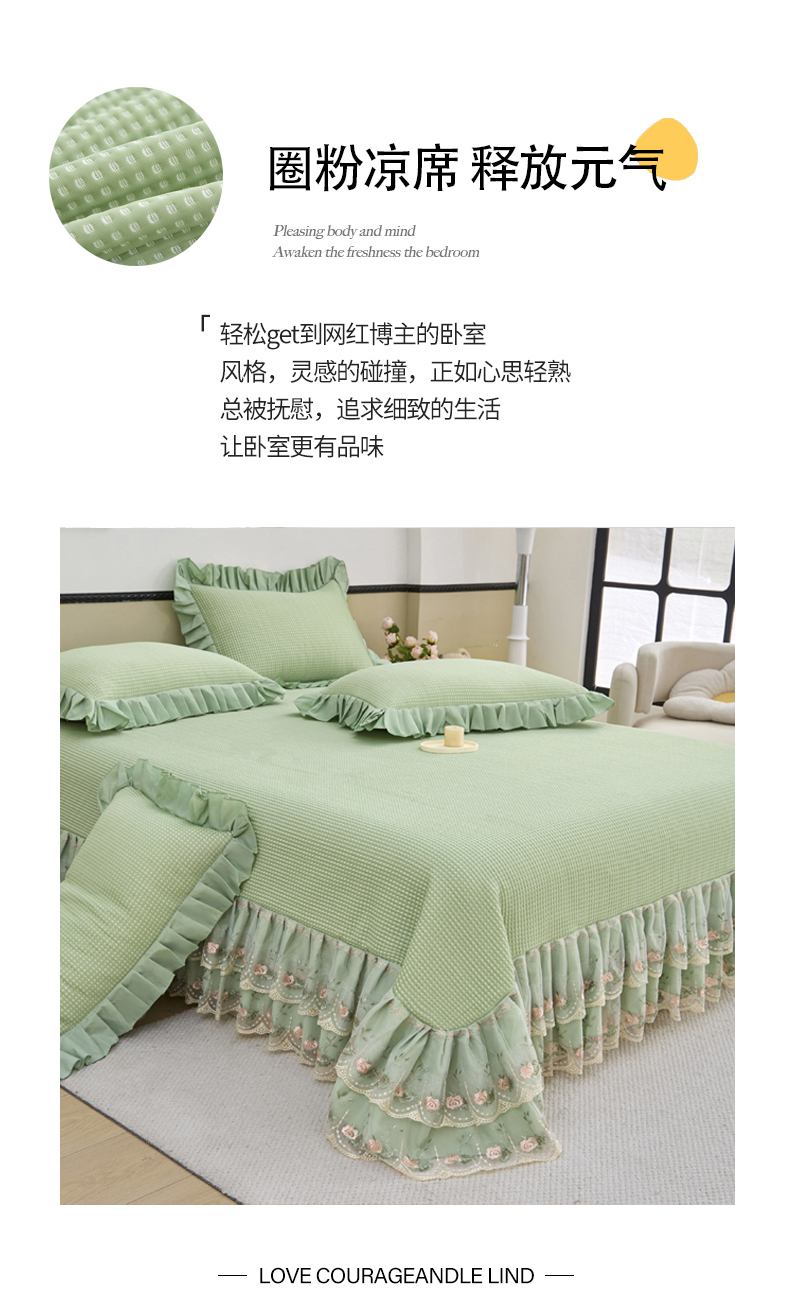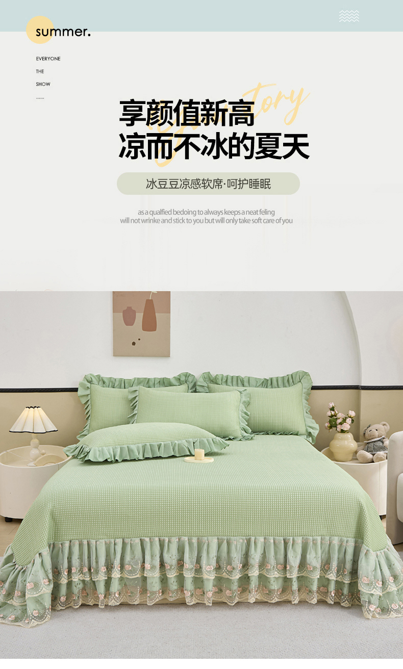 当前位置: 91家纺网 > 商品网购 > 床上用品 > 凉席 > 凉席套件 > 能好家纺 2026新款冰豆豆华夫格pe凉感席 绿