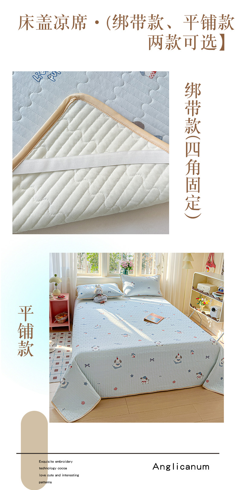 卡普二店 2026新款A类锦氨凉感印花夏被四件套床盖凉席款--凉席床盖 奶粉修勾