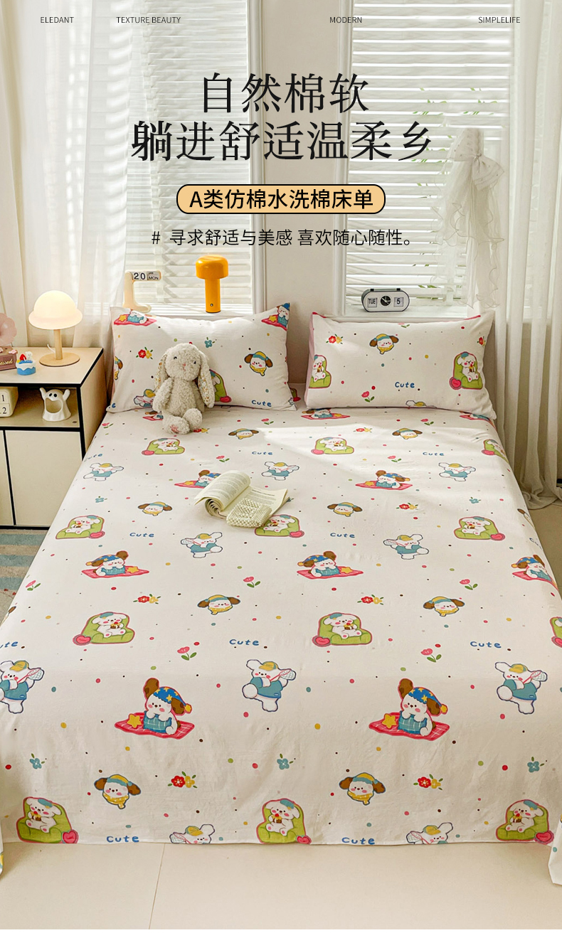 纽缦家纺 2026新款A类105g四件套古法水洗棉单床单床单单件 美丽小兔
