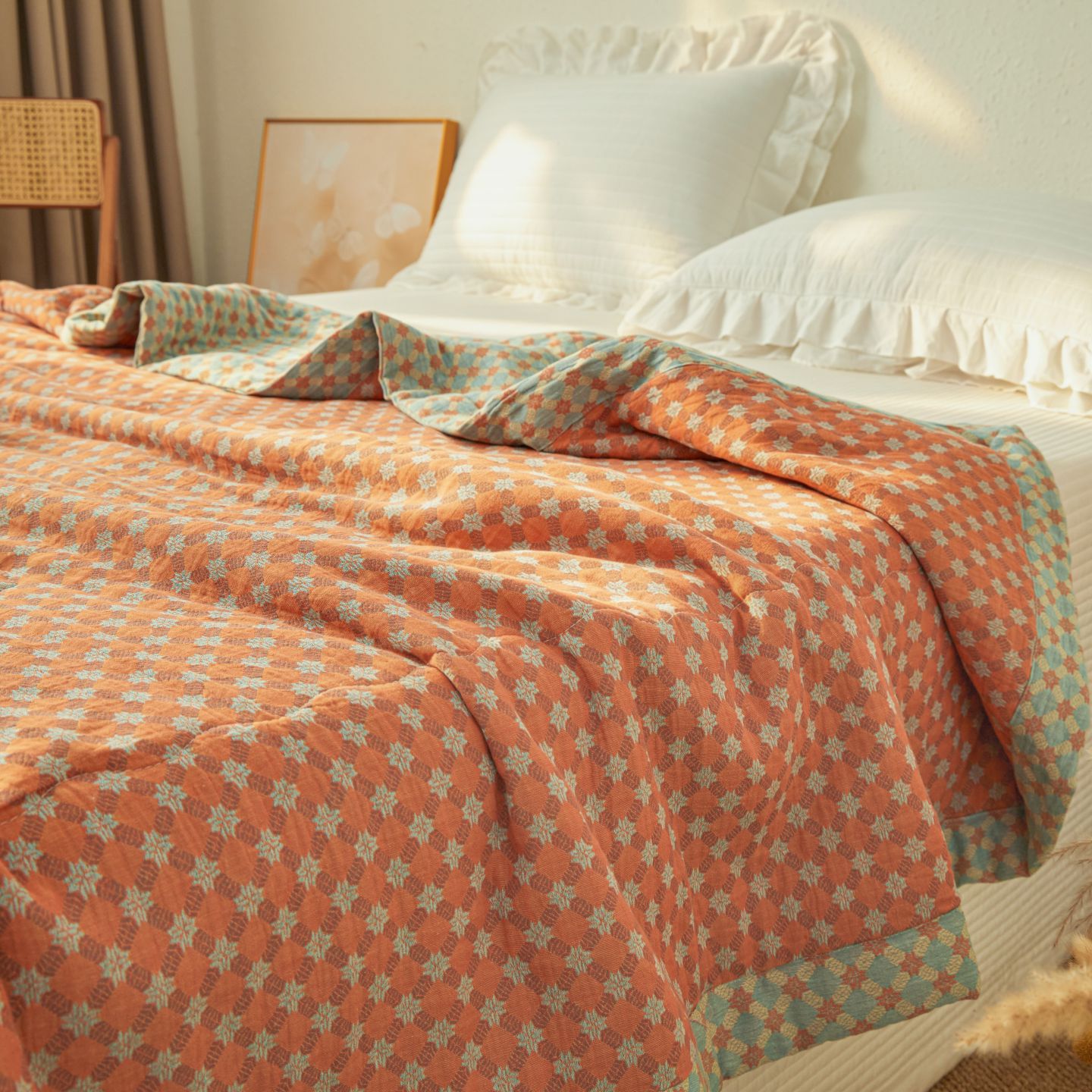 睡棉坊 2026新款全棉色织提花双层纱夏被全棉夏凉被里外全棉天然棉花被 费尔岛兔-桔蓝