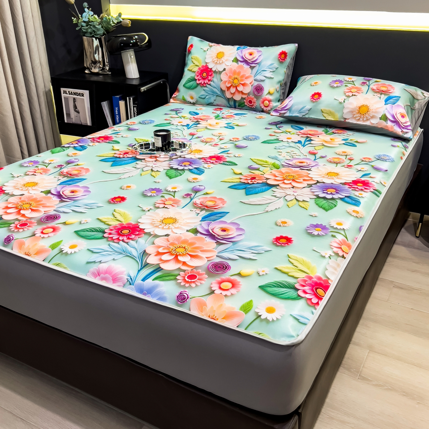 商品名称:柏薇 2026新款数码印花超级凉感席床笠款 春生物