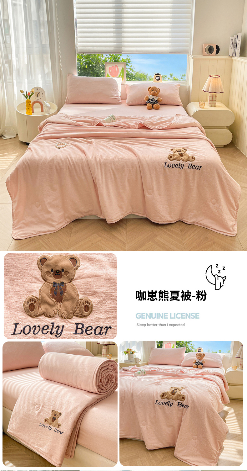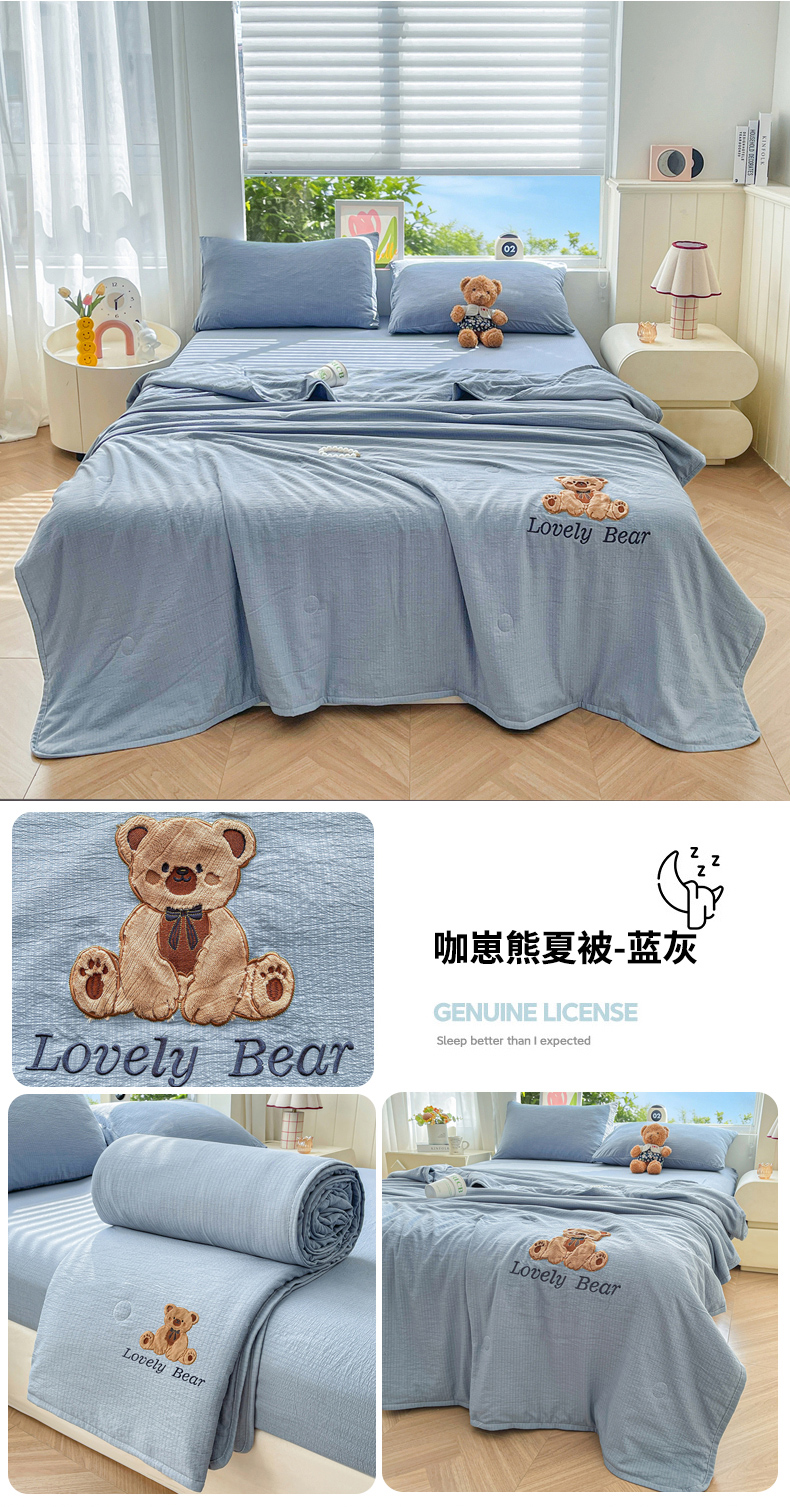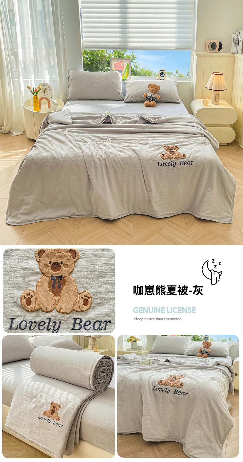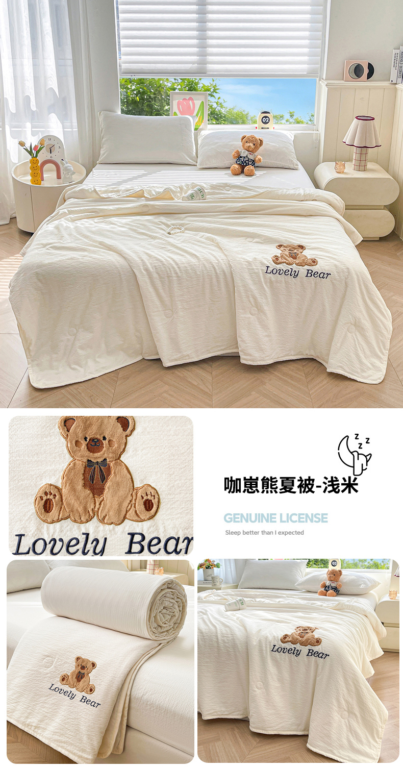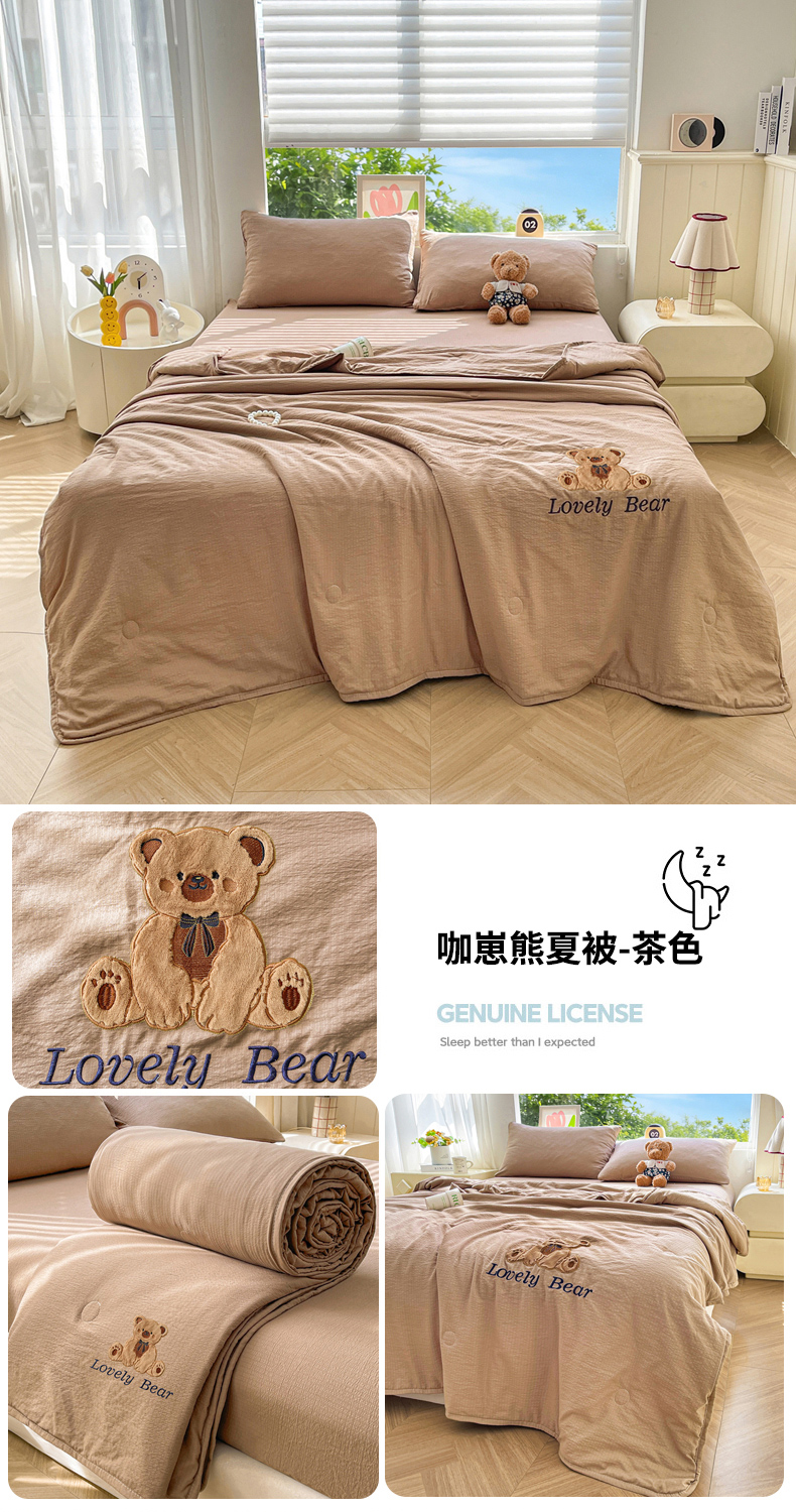 商品名称:(总)爱思凯家纺 2026新款皱皱纱贴布绣夏被夏凉被空调被-咖崽熊