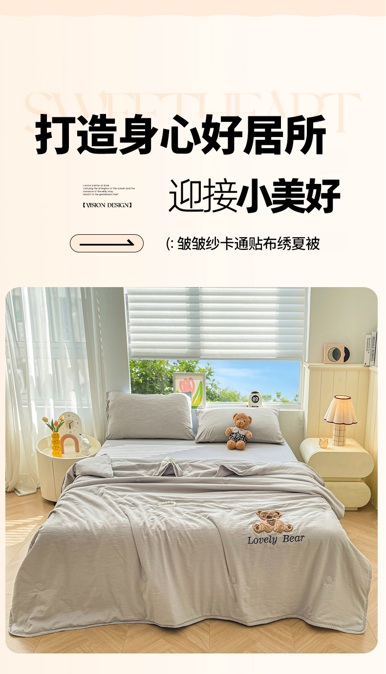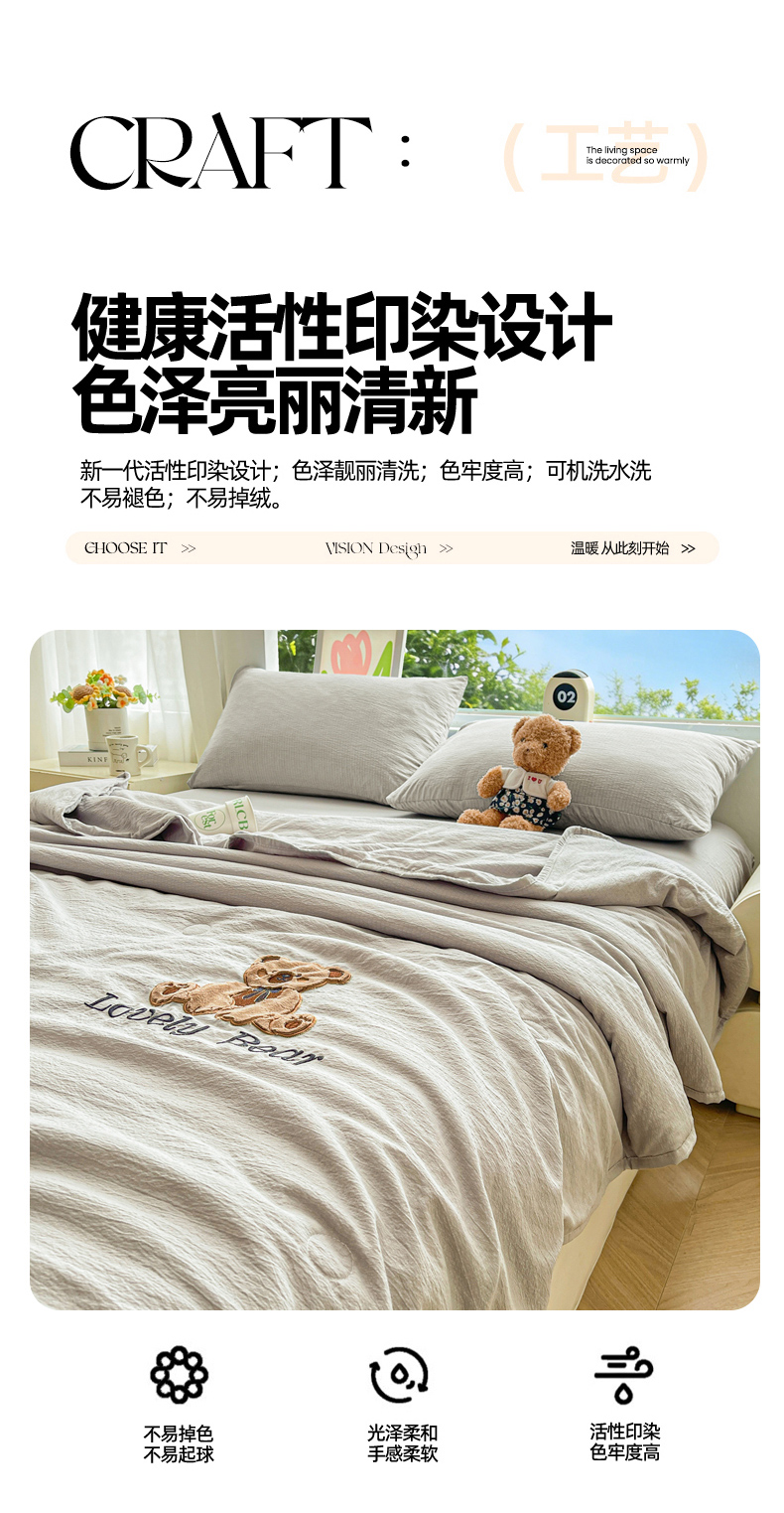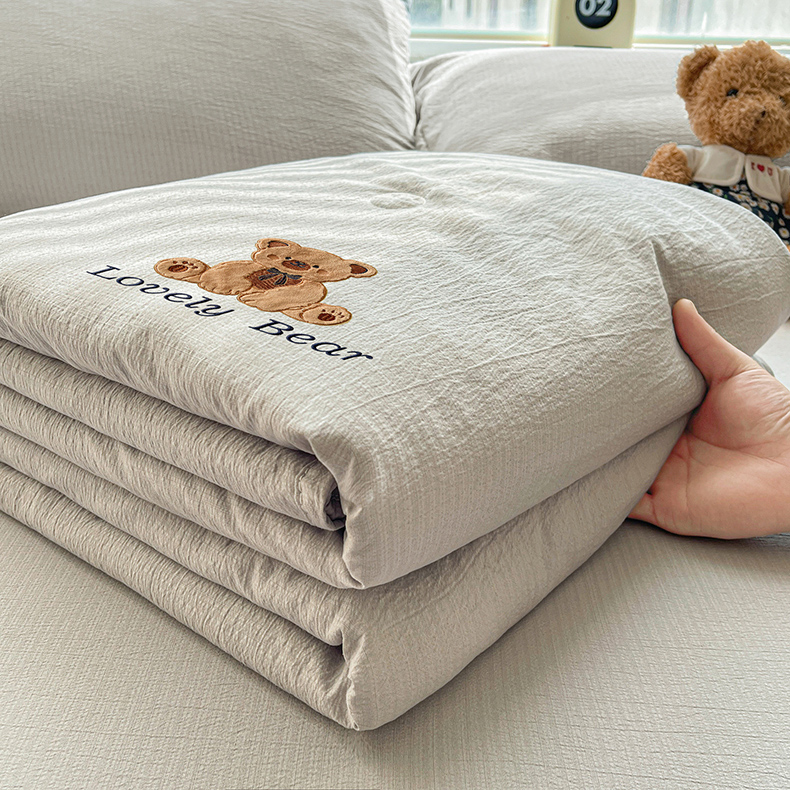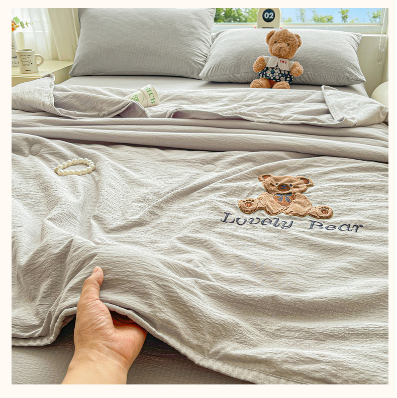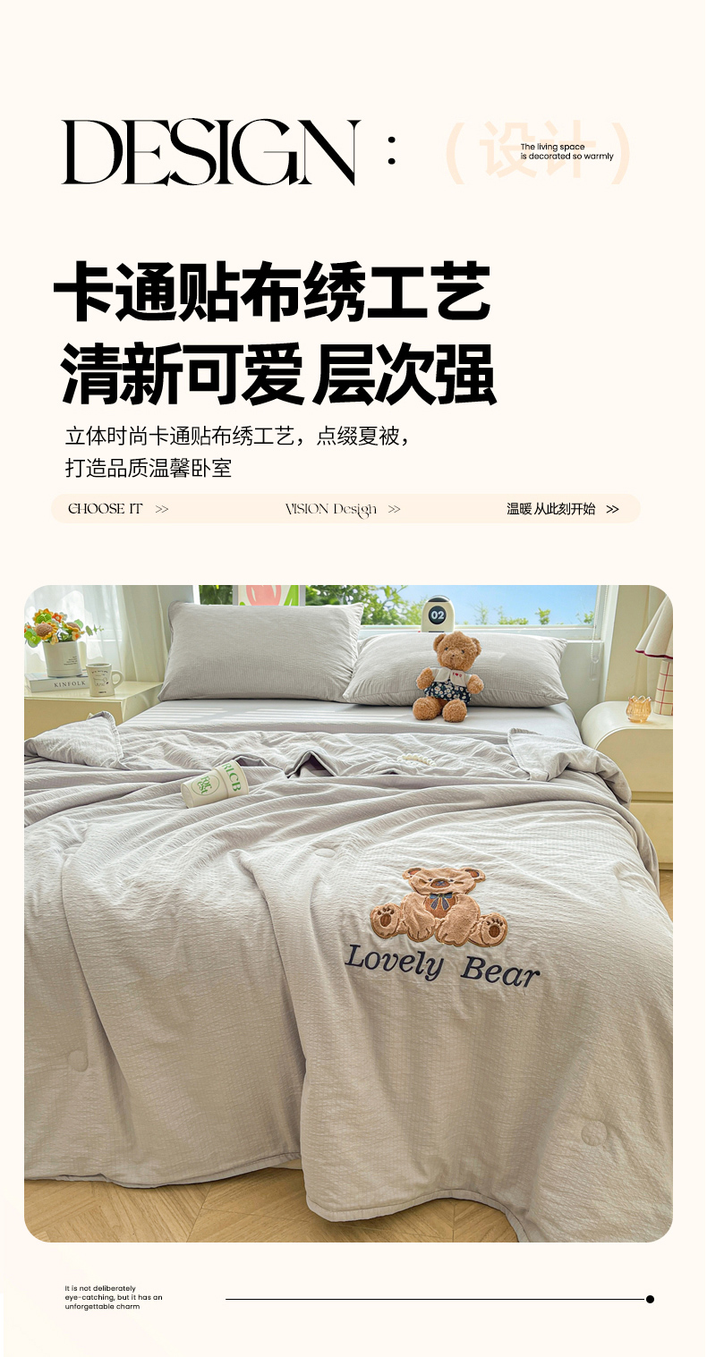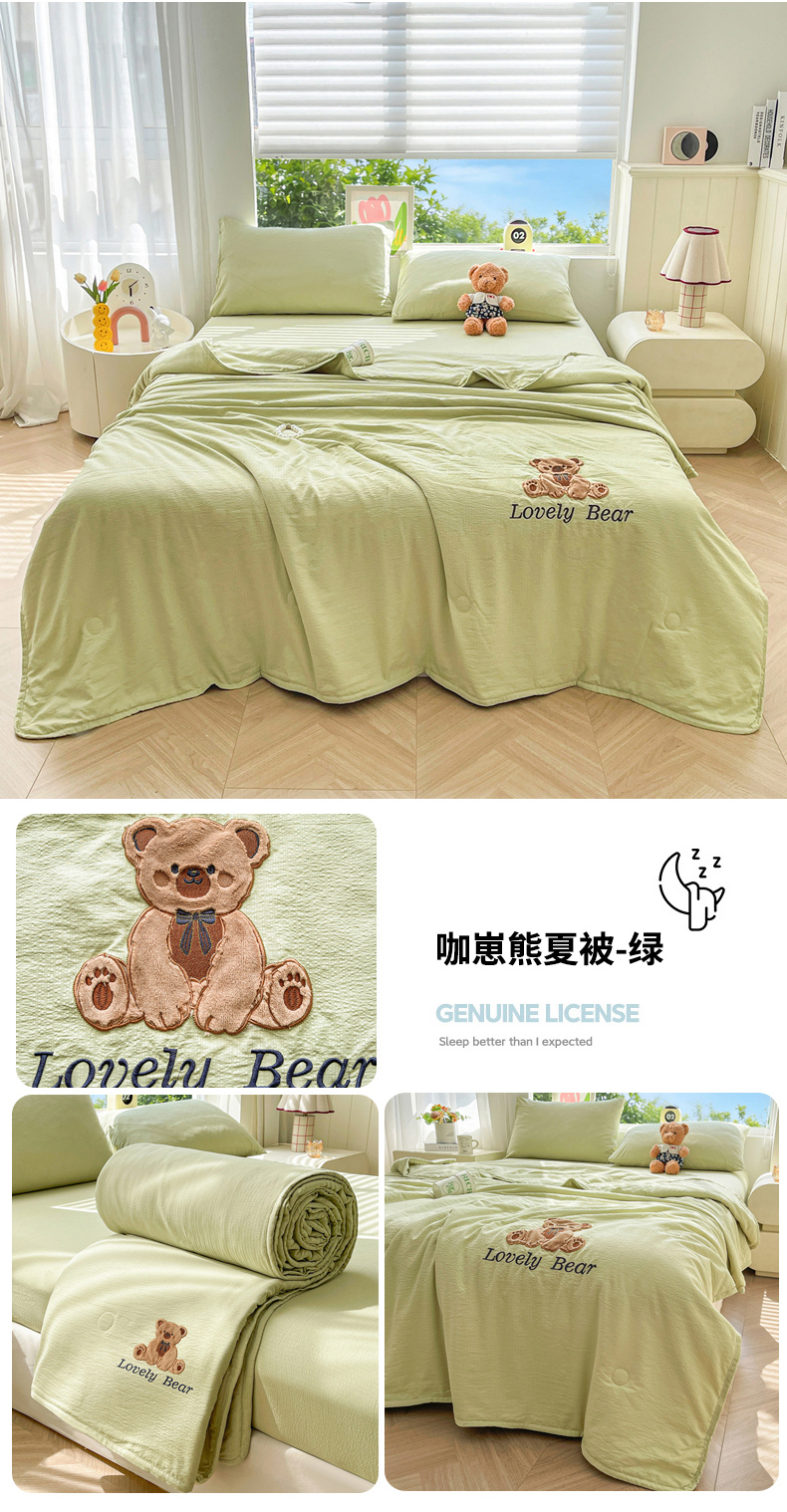 商品名称:(总)爱思凯家纺 2026新款皱皱纱贴布绣夏被夏凉被空调被-咖崽熊