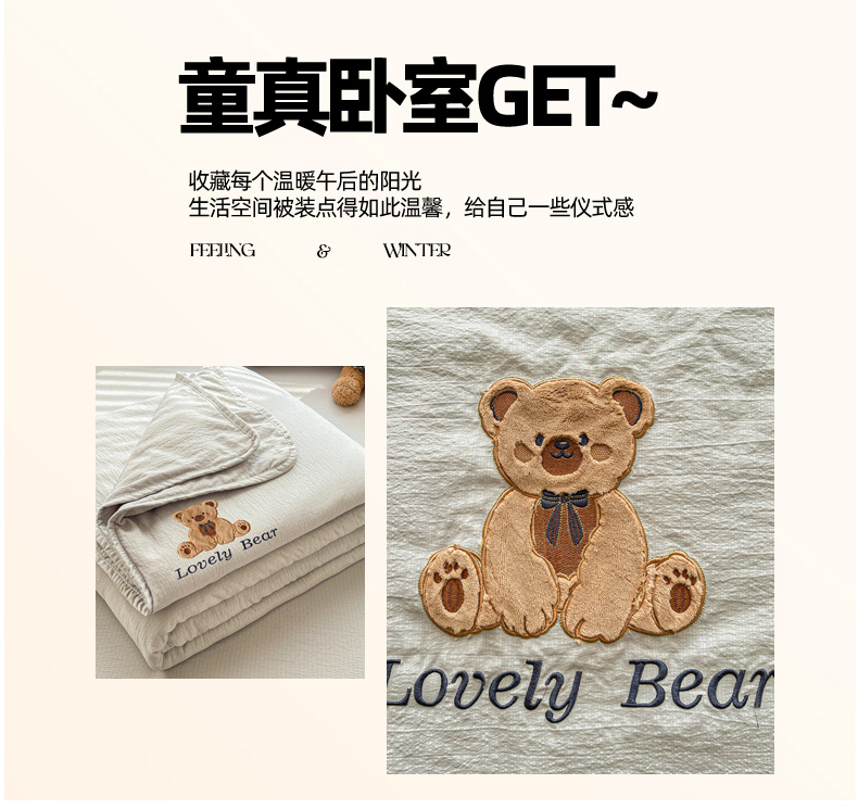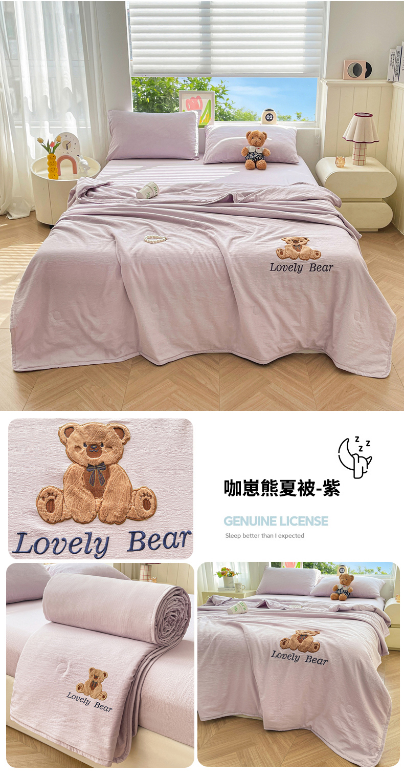 (总)爱思凯家纺 2026新款皱皱纱贴布绣夏被夏凉被空调被-咖崽熊