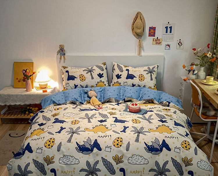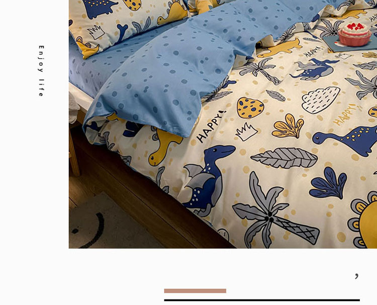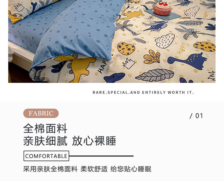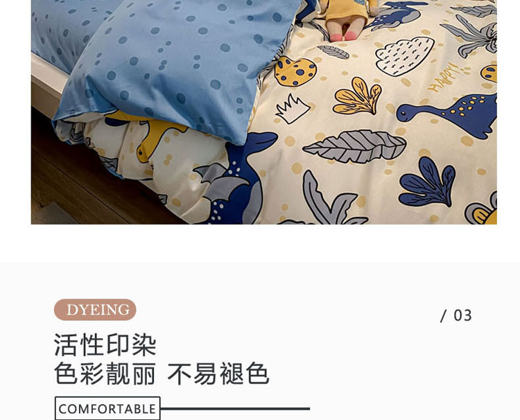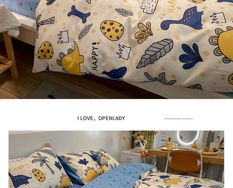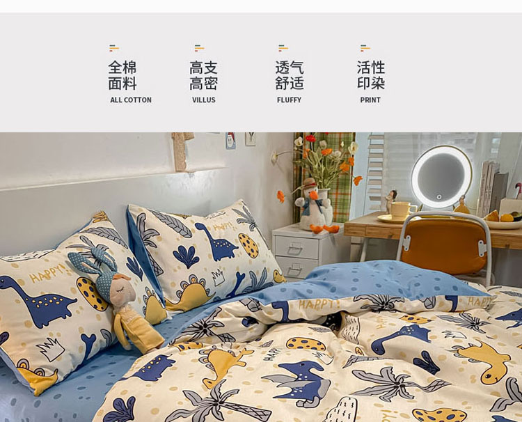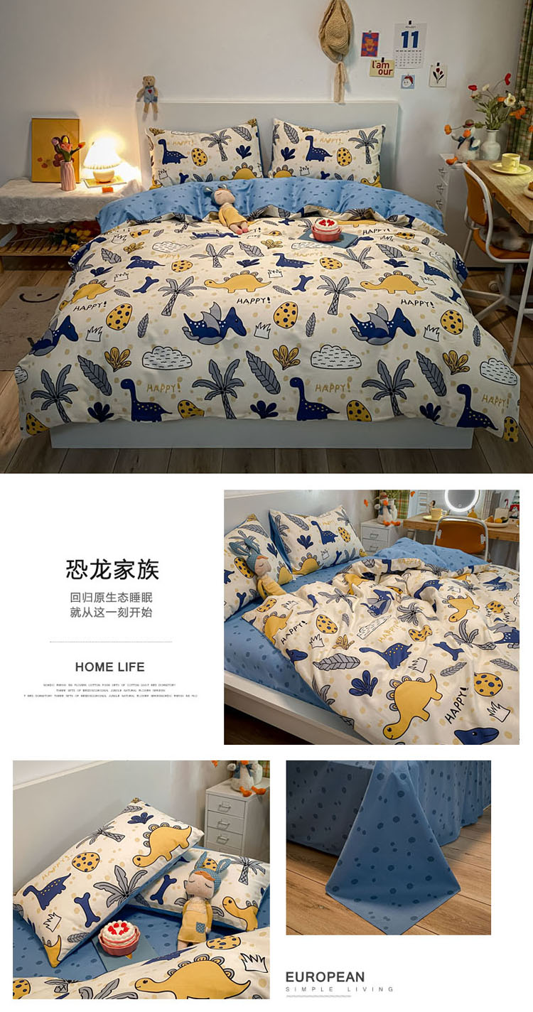 当前位置: 91家纺网 > 商品网购 > 床品套件 > 四件套 > 全棉普通四件套 > 梦家居 2021春季新品全棉小清新四件套恐龙家族