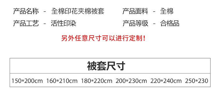 商品名称:(总)甜之梦 2025新款全棉印花夹棉抗菌被套可定制任何尺寸