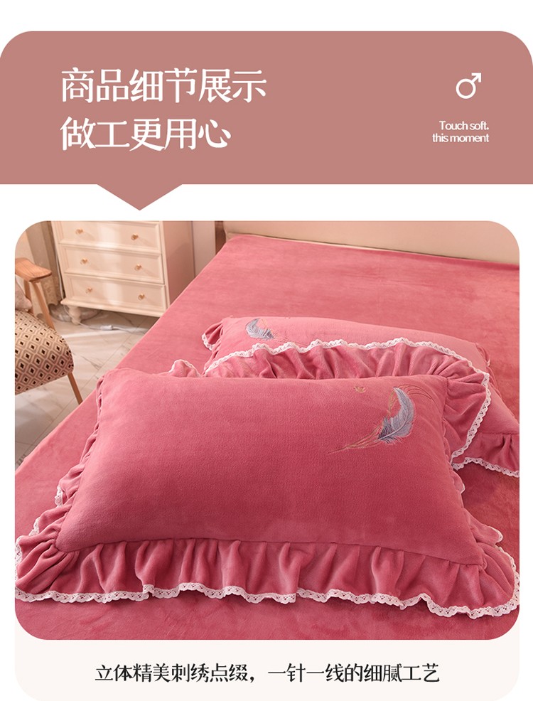 商品名称:(总)迪欧芙2023新款加厚牛奶绒刺绣床裙款四件套羽毛花