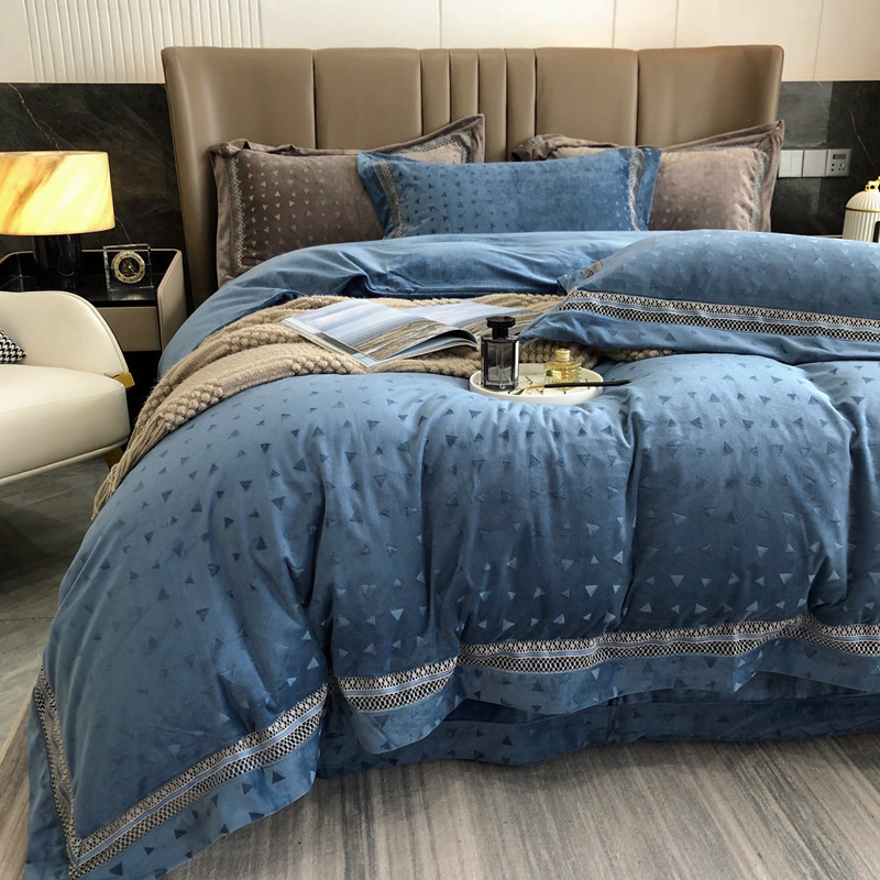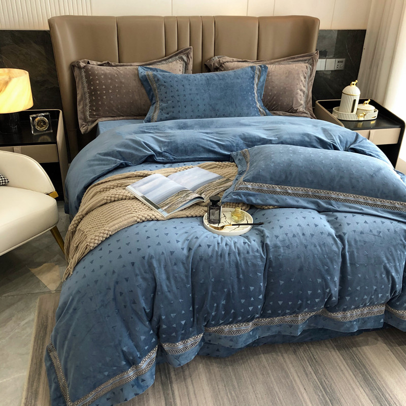 (总)榻尚家居 2025新款秋冬加厚绵阳绒牛奶绒四件套,绵阳绒灰色,绵阳绒蓝色,绵阳绒棕色