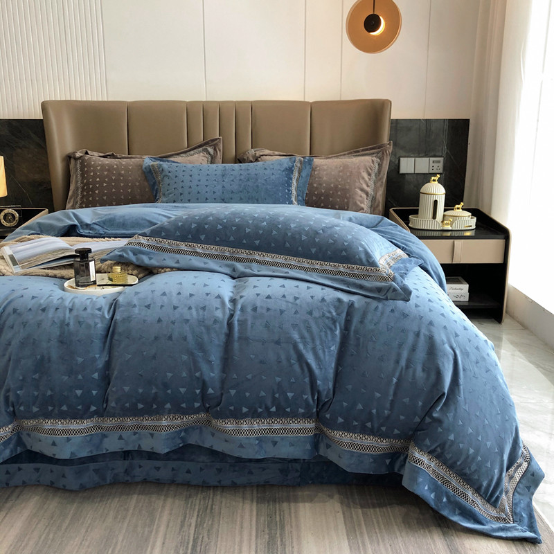 商品名称:榻尚家居 2021新款爱丽丝纯色浮雕婴肤绒四件套 爱丽丝 -蓝
