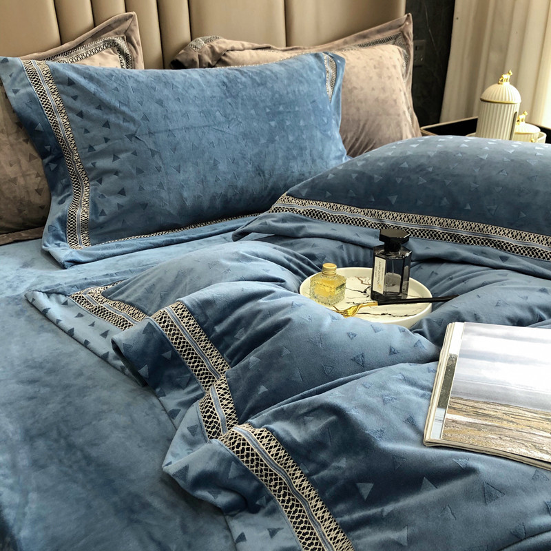 榻尚2023新款进口蕾丝缕空260克公主绒加厚牛奶绒秋冬款四件套,低调的华丽-粉玉,低调的华丽-海雾蓝,低调的华丽-奶茶棕,低调的华丽-象牙白