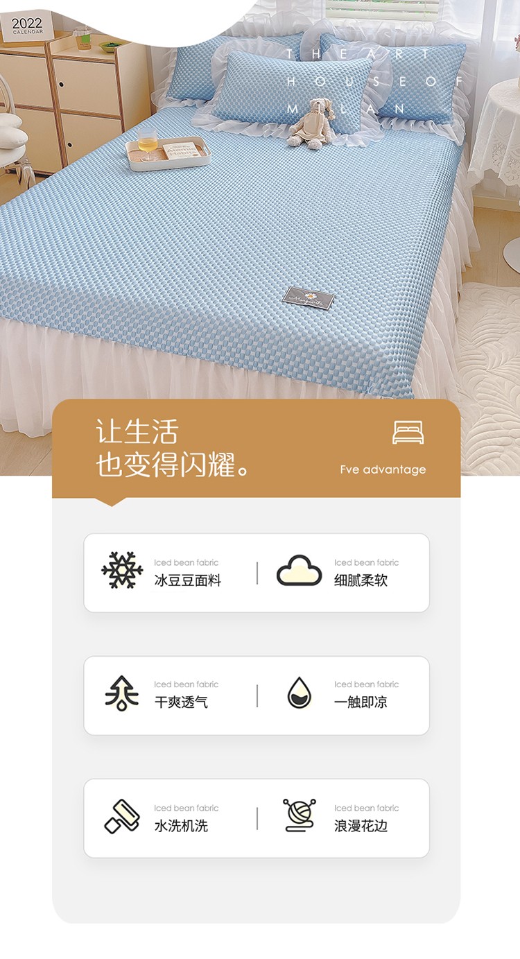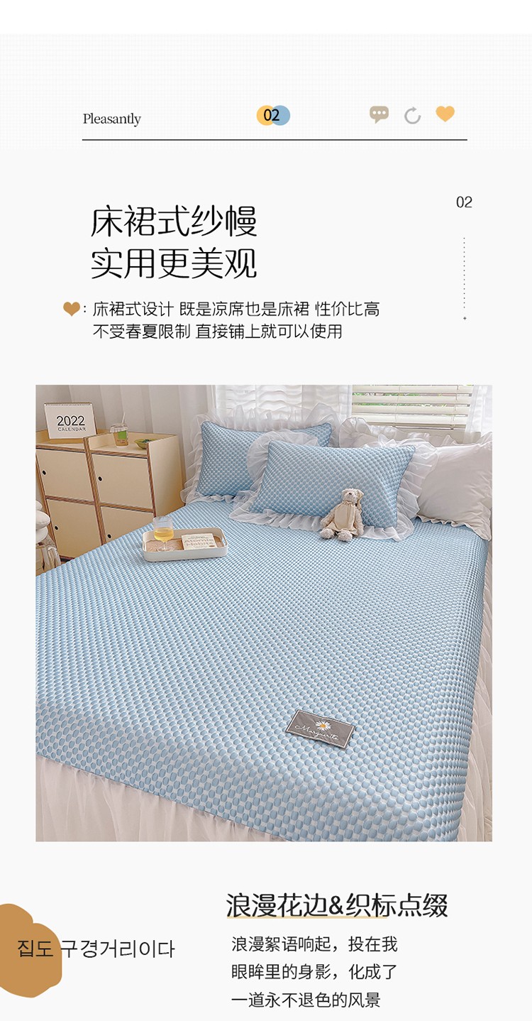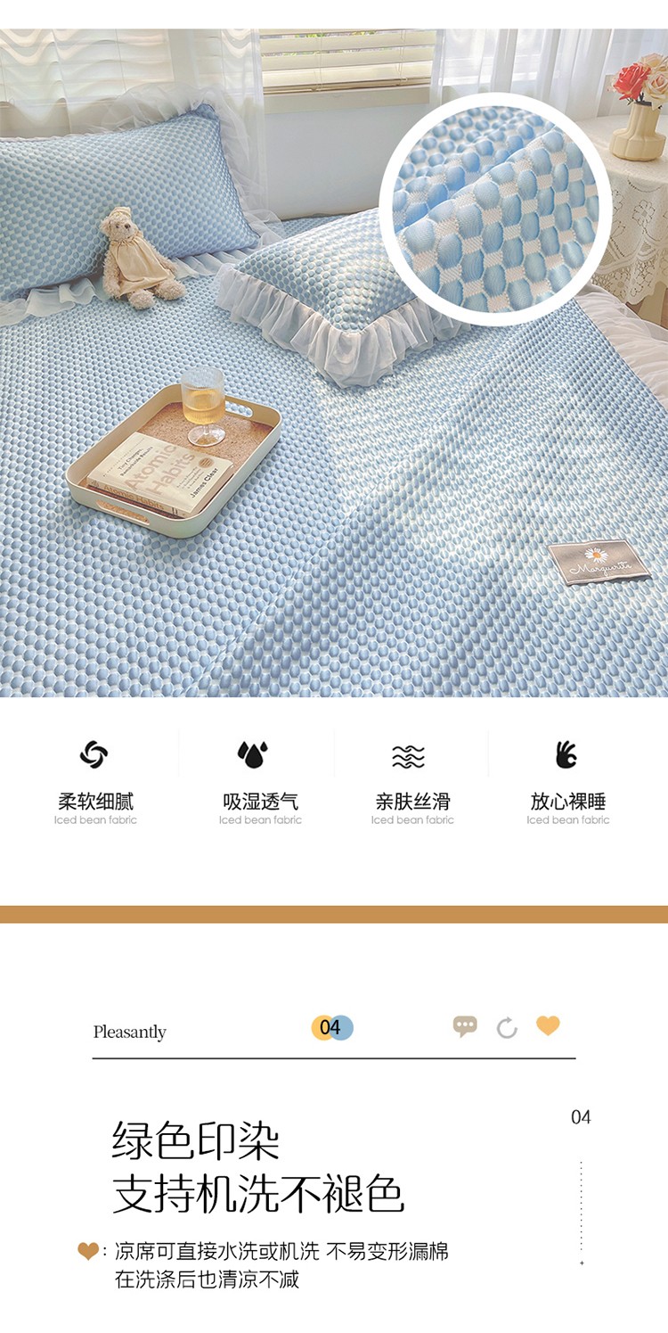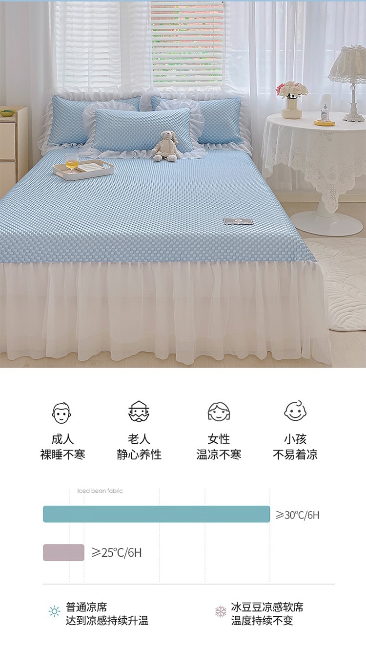 商品名称:吾秀冰豆豆席凉感软席床裙公主冰丝席三件套冰凉感豆豆席凉席公主蓝
