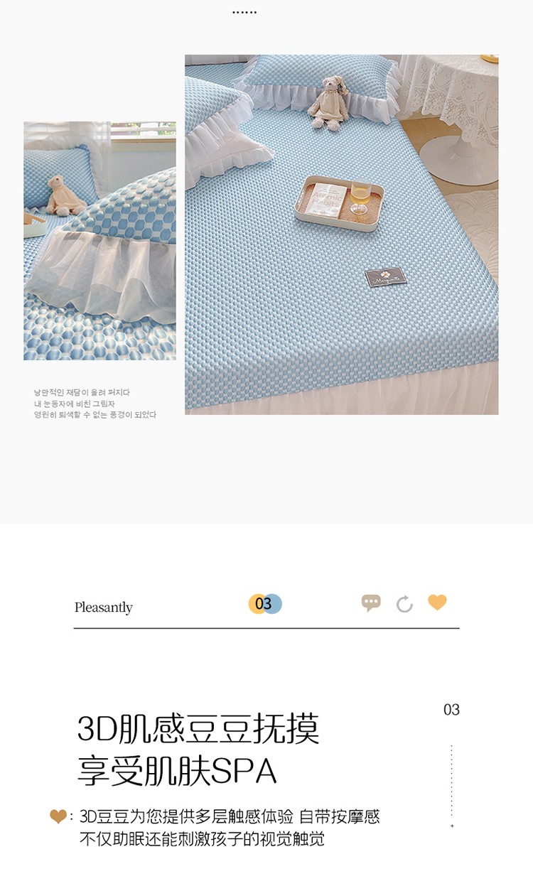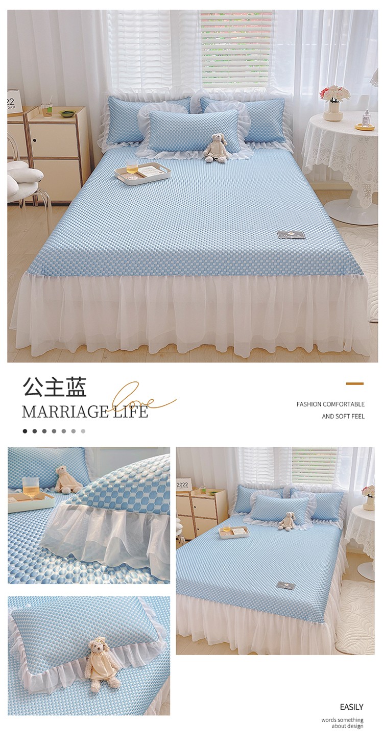 吾秀冰豆豆席凉感软席床裙公主冰丝席三件套冰凉感豆豆席凉席公主蓝