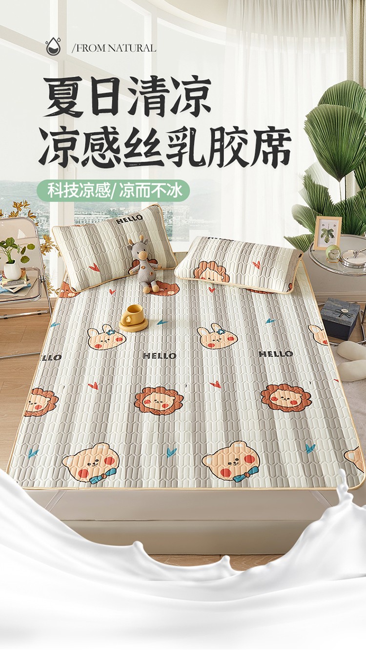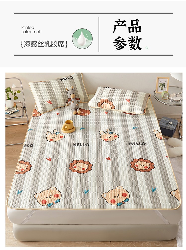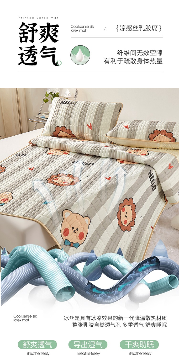 湘之帛 2025新款0.3m乳胶凉席三件套系列柿子小熊