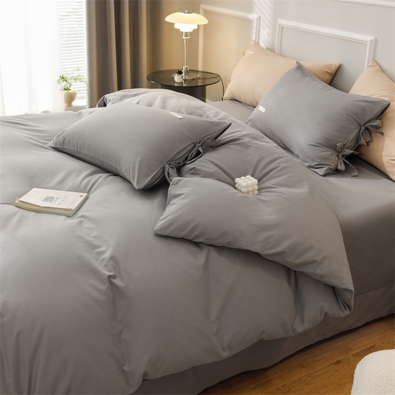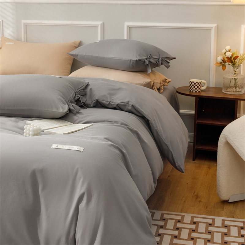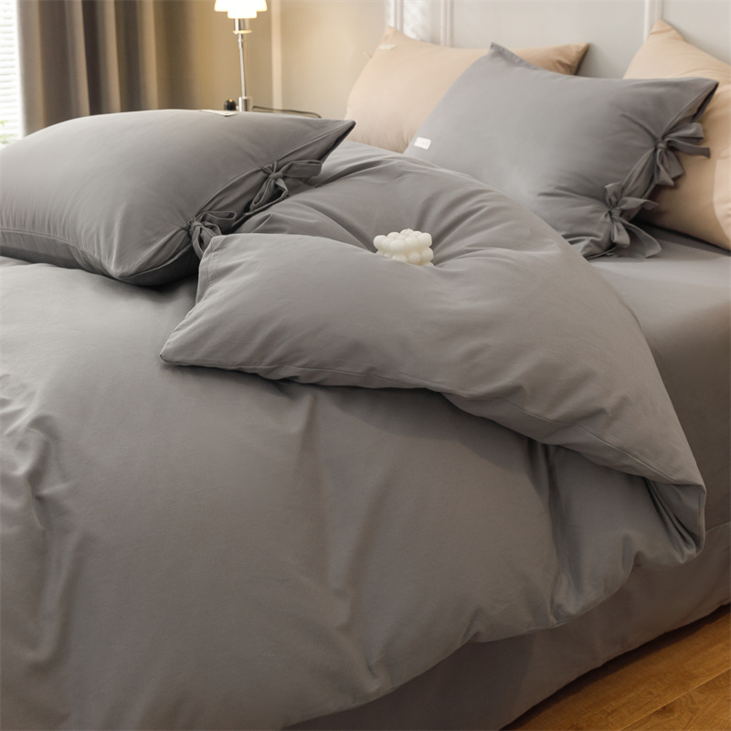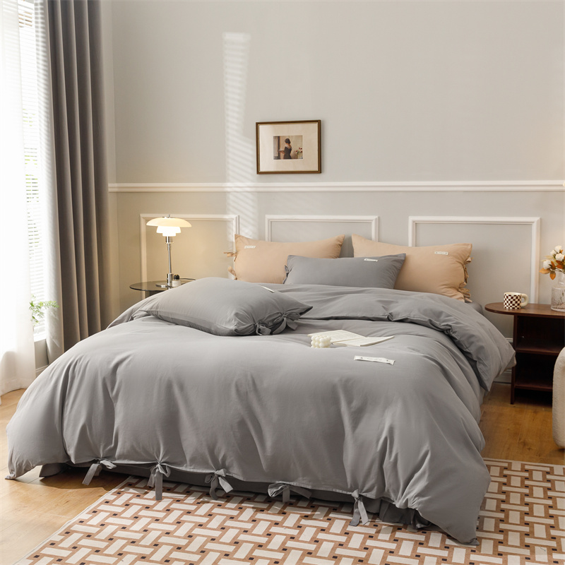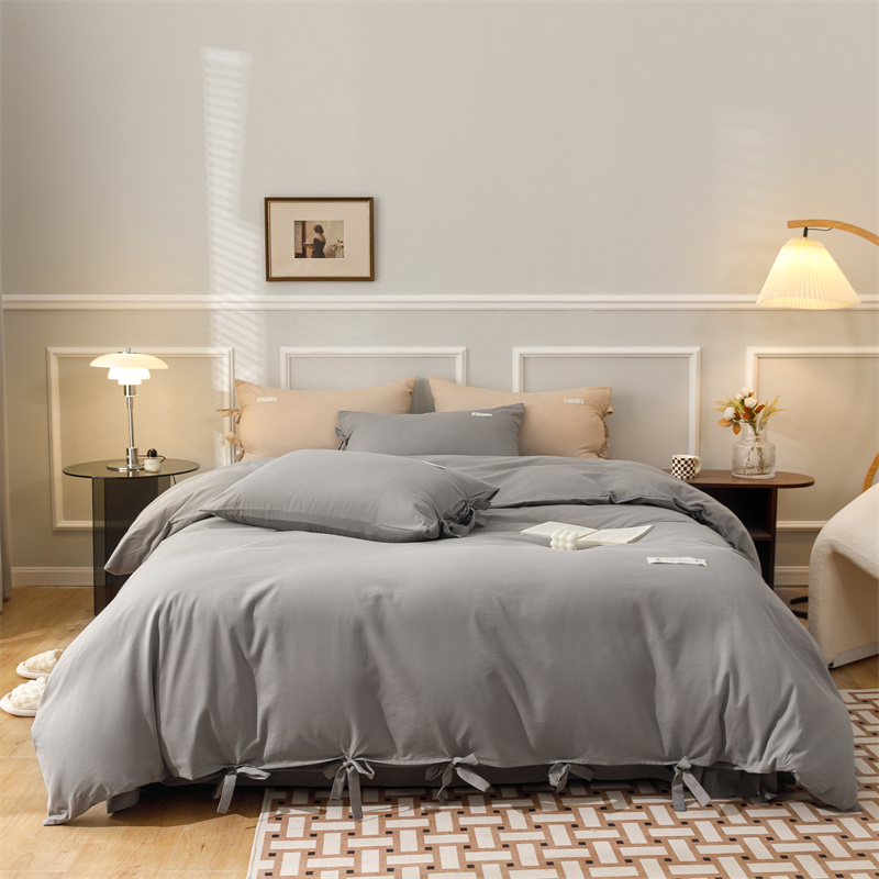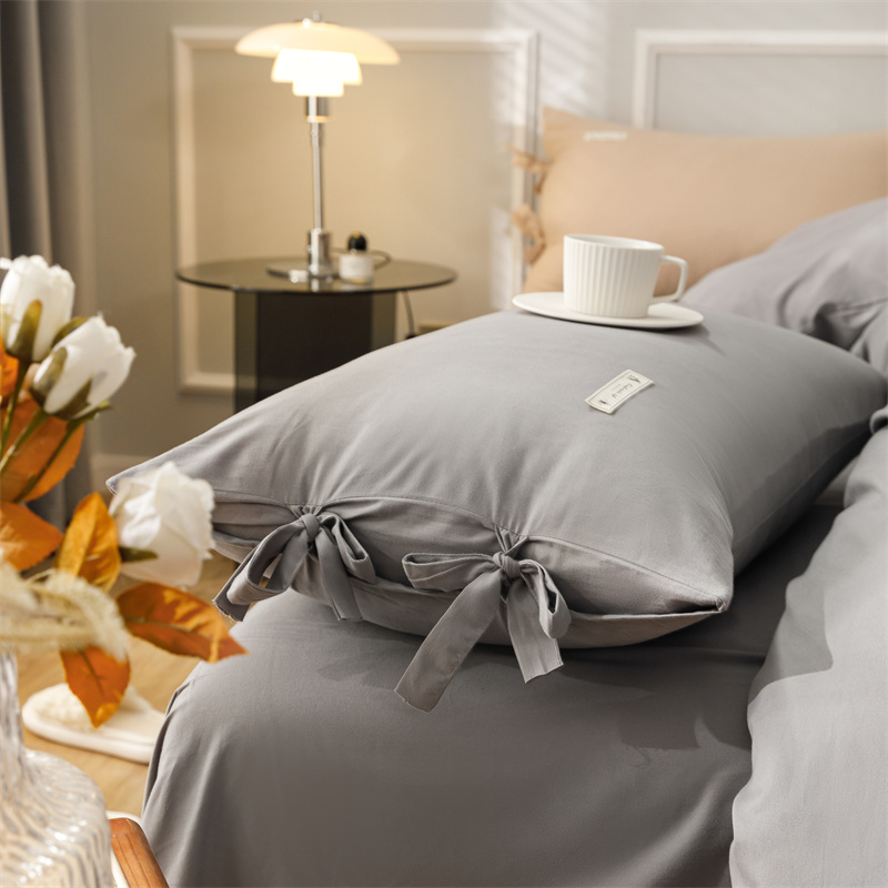 秀色家纺 2025新款简约纯色60支加厚保暖全棉磨毛四件套 简兮-铂金灰