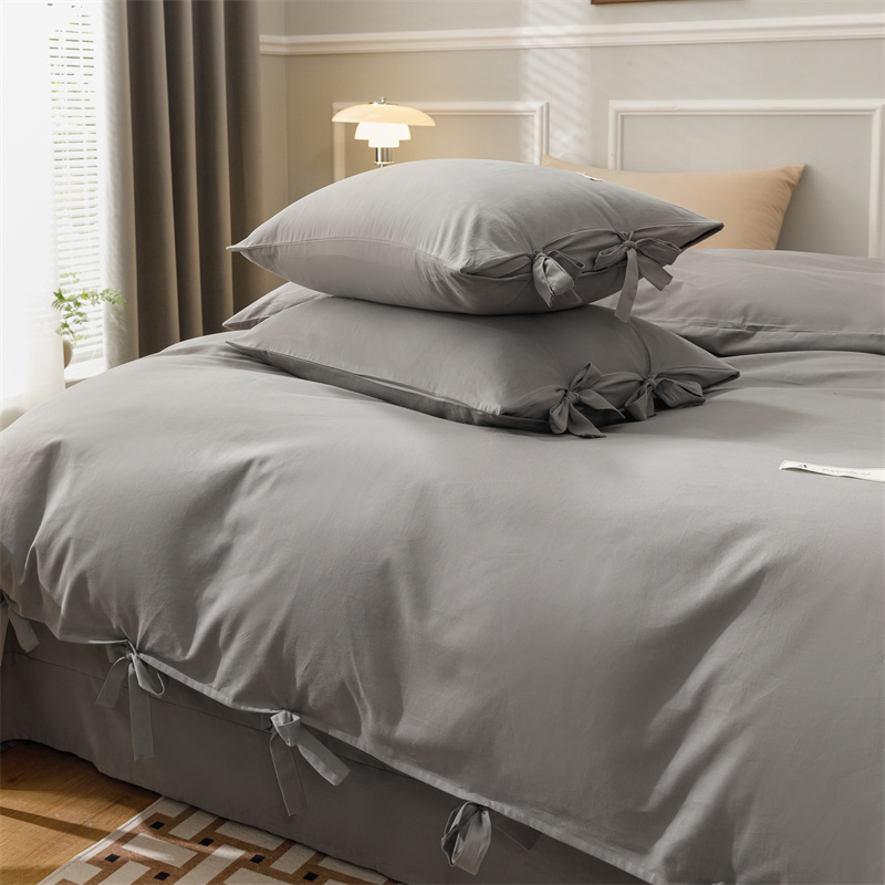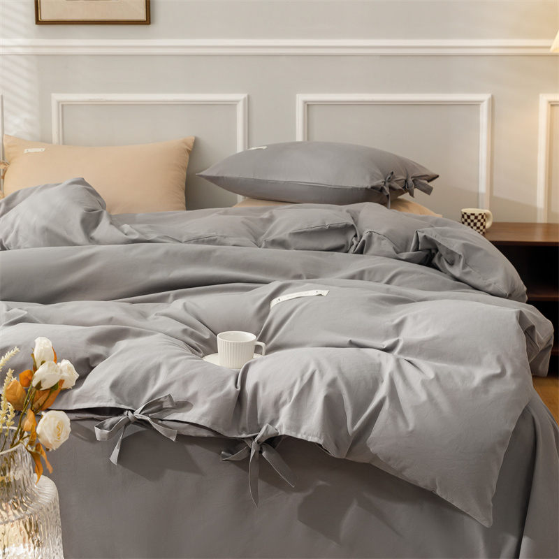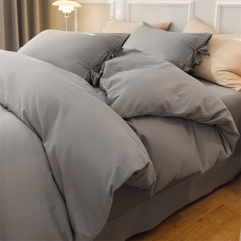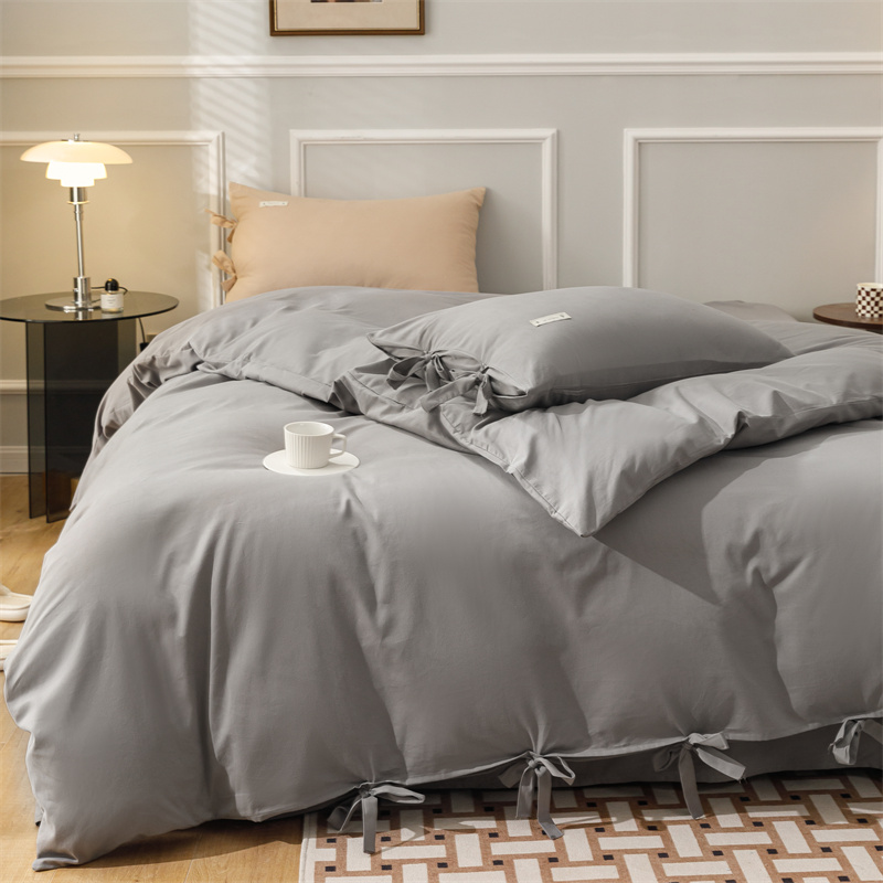 商品名称:秀色家纺 2025新款简约纯色60支加厚保暖全棉磨毛四件套 简兮-铂金灰