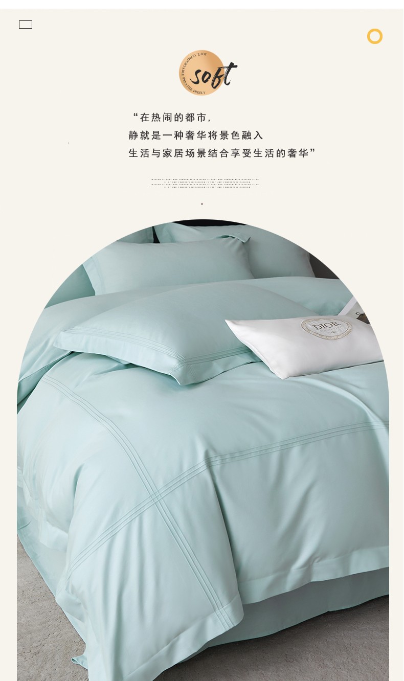 (总)安妮家居 2025新款100S长绒棉贡缎纯色四件套,水漾蓝,胧月灰,奶白色,蔷薇粉,柔缦紫,砂砾咖