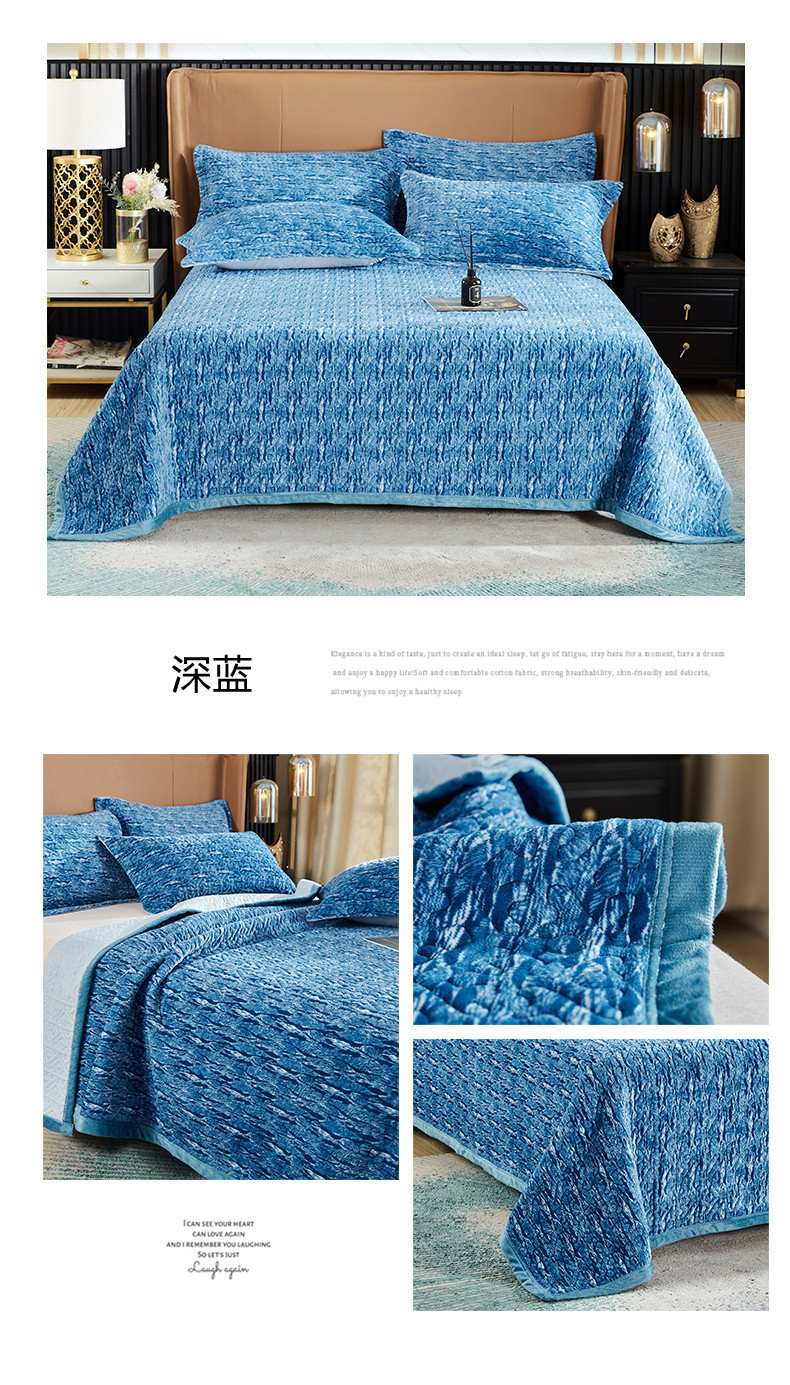• 91家纺网 家纺一手货源 找家纺 佳梦家纺 2023新款冬季色织绗缝床盖榻榻米垫子牛奶绒毛毯 深蓝