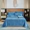 佳梦家纺 2023新款冬季色织绗缝床盖榻榻米垫子牛奶绒毛毯 深蓝