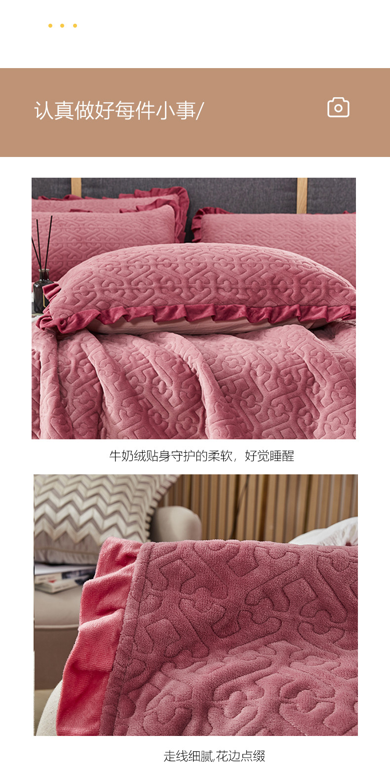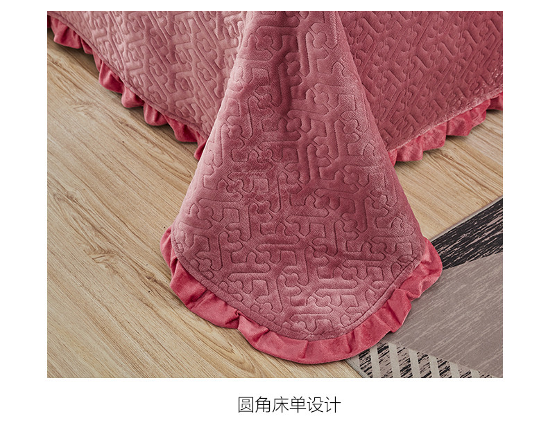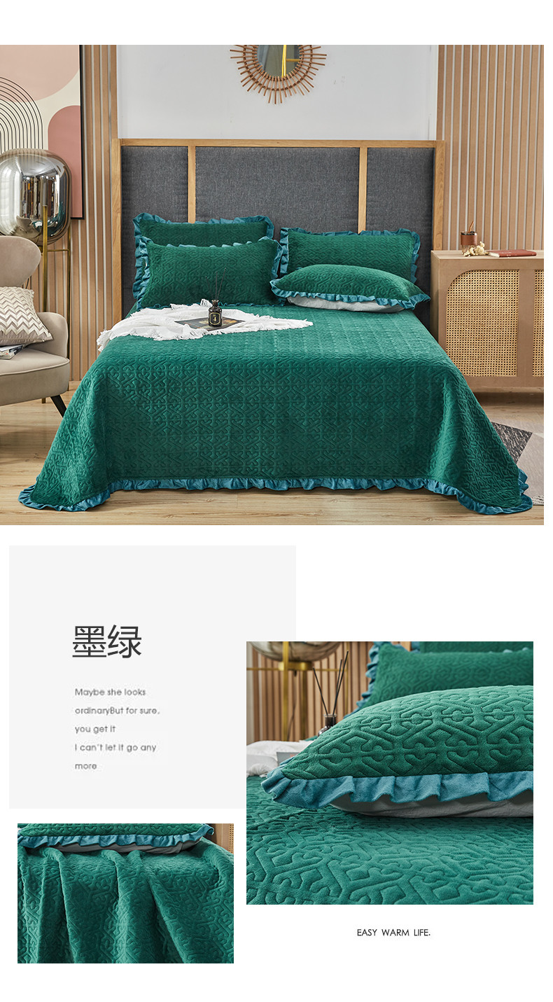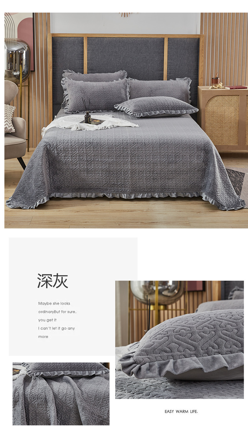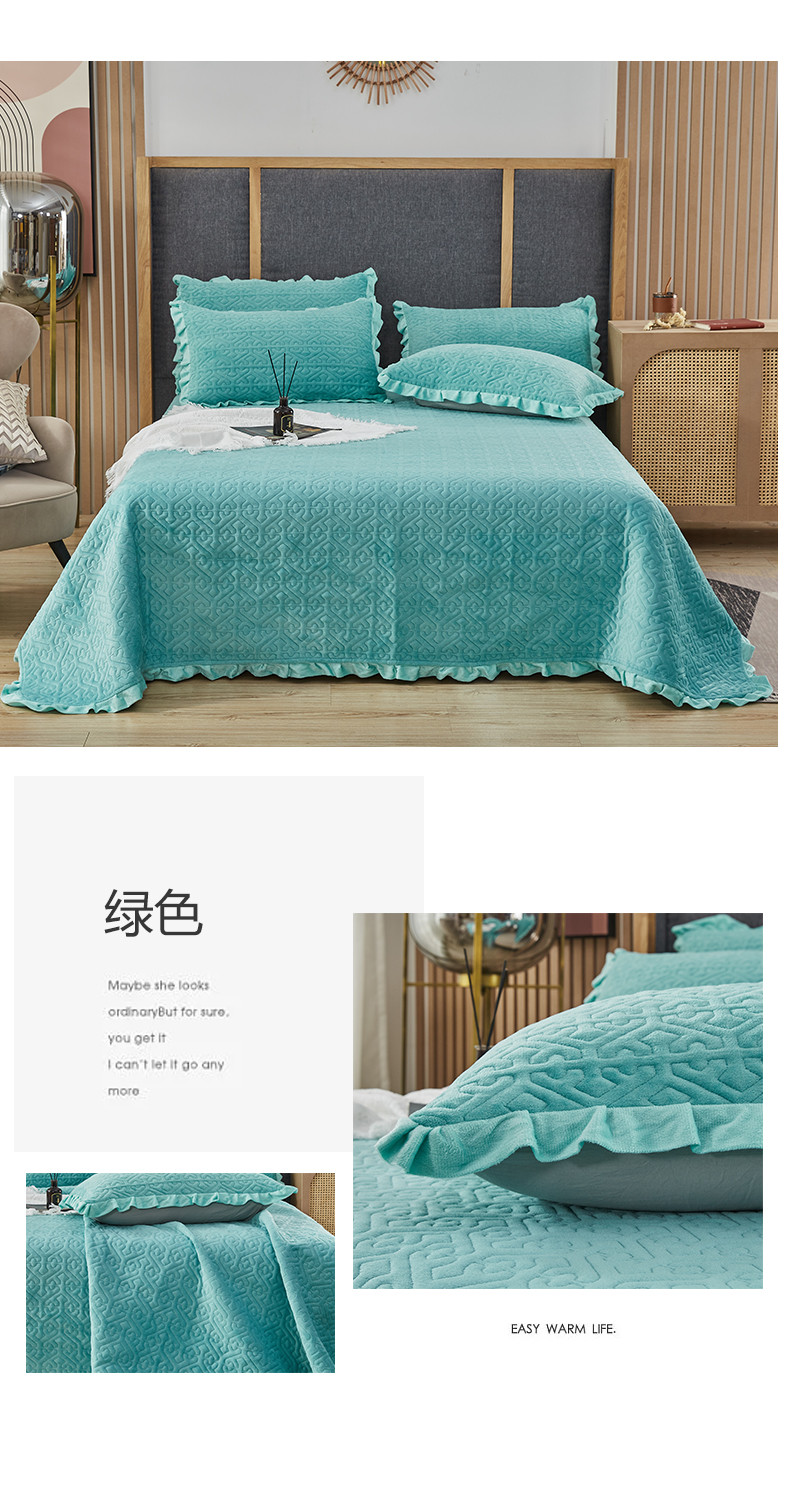 总佳梦家纺 牛奶绒纯色花边床盖绗缝夹棉绒毯三件套榻榻米席梦思床垫子