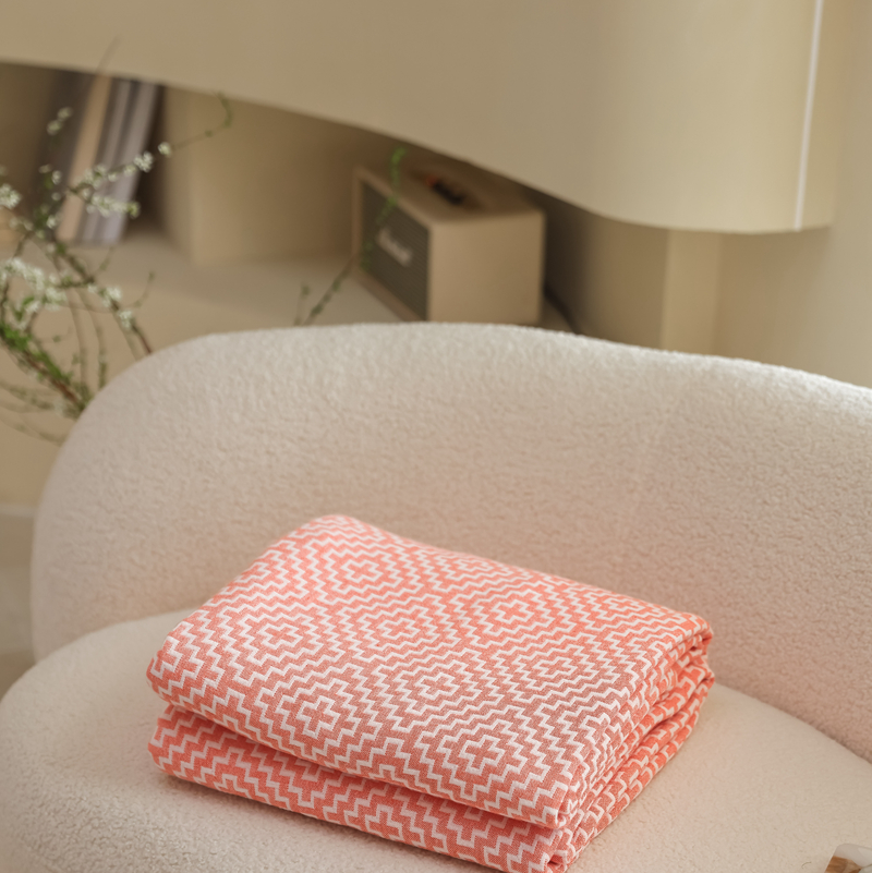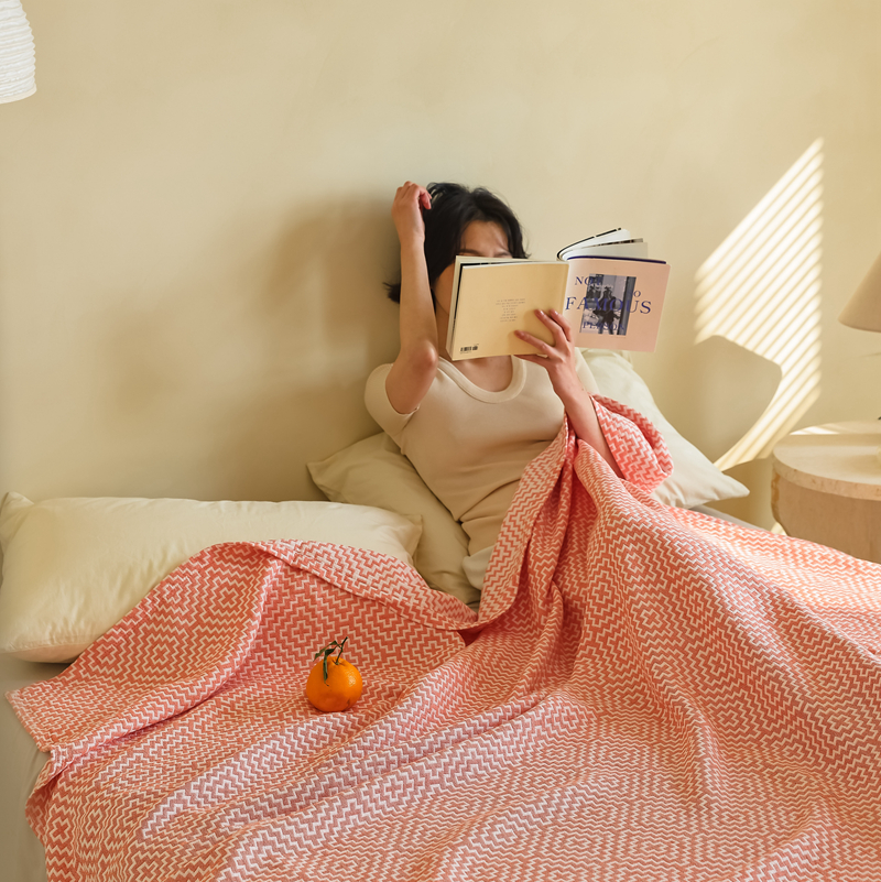朴尔 2024年新品格调简约风全棉三层纱布毛巾被 西西里-橘