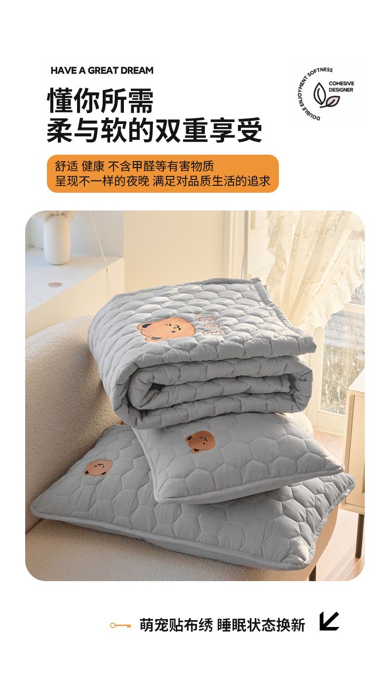 当前位置: 91家纺网 > 商品网购 > 床垫/床褥 > 普通床垫 > 恋绒家纺 2025新款A类刺绣款床褥学生软床垫子床护垫软垫(图2) 可爱熊-浅灰