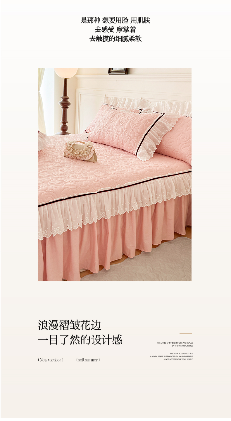 商品名称:麒豆豆 2024新款全棉双层纱花边款爱丽丝系列单床裙 樱花粉