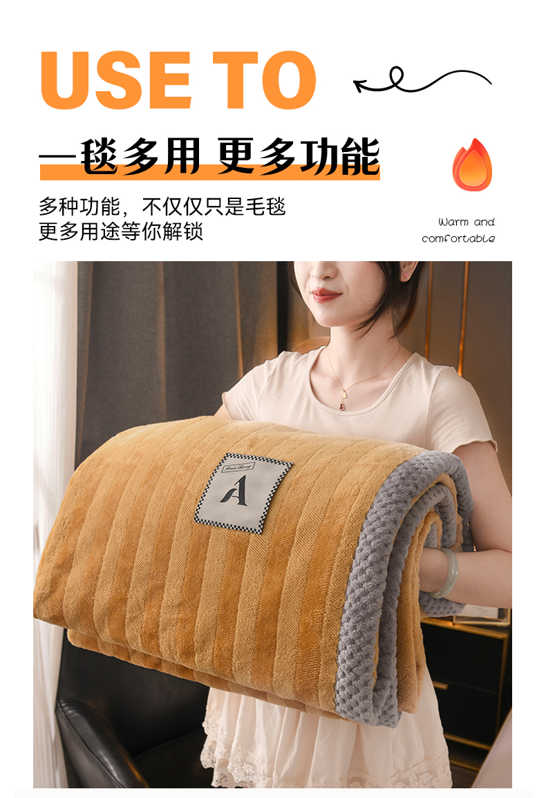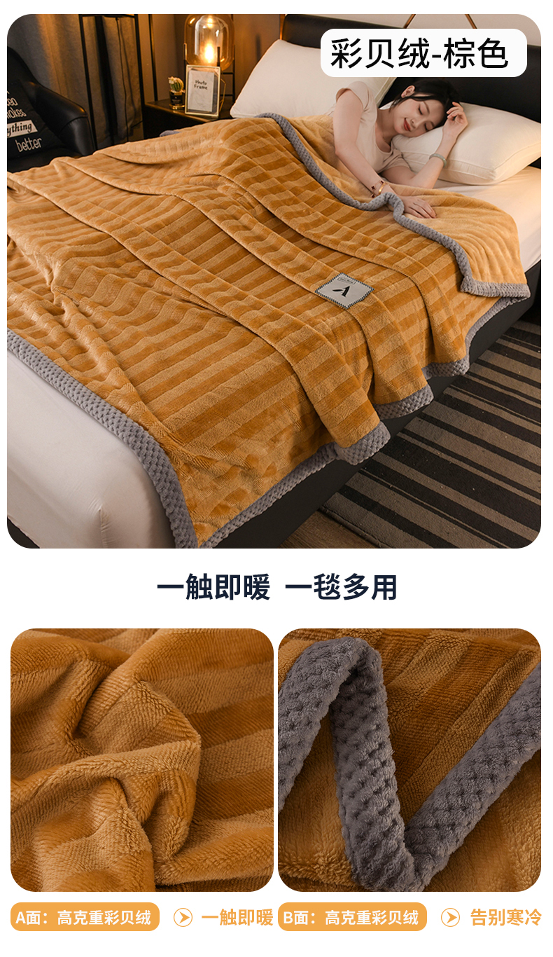 商品名称:恋绒家纺 2025新款双面绒休闲毛毯多功能毛毯牛奶绒毯子法莱绒盖毯 彩贝绒-棕色