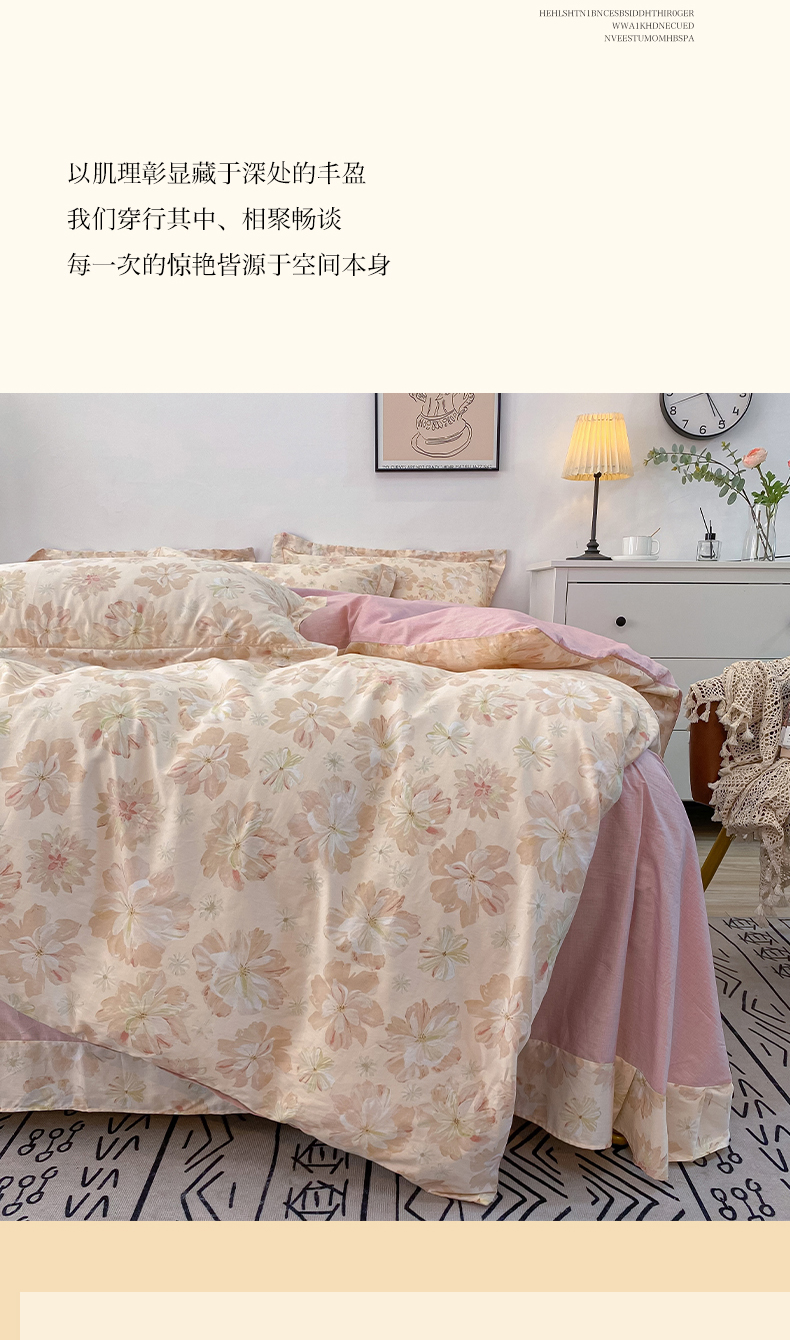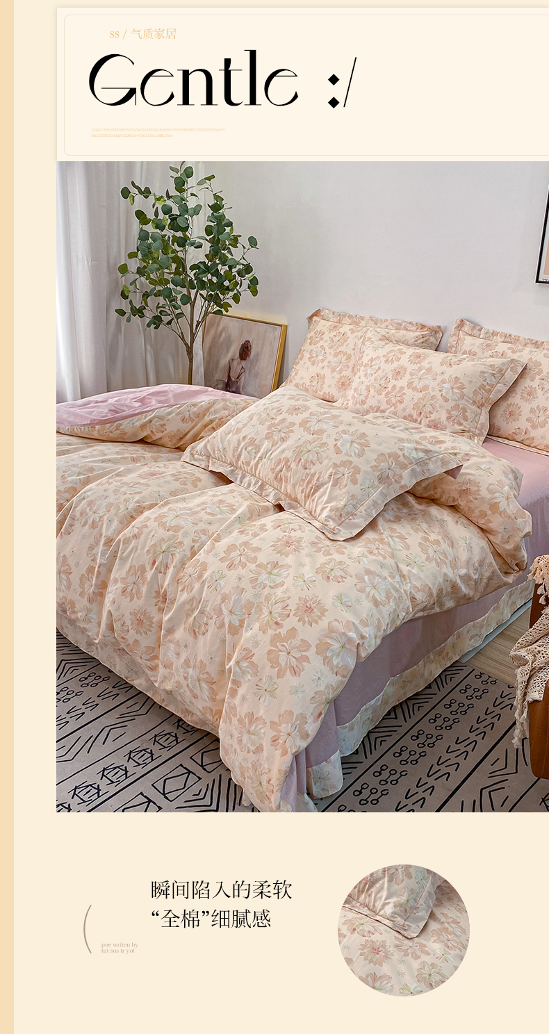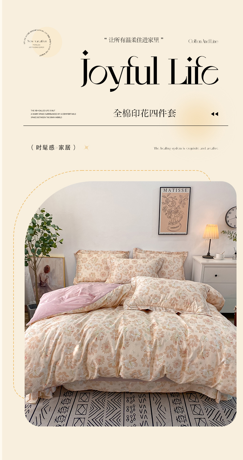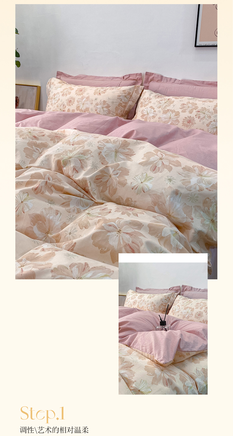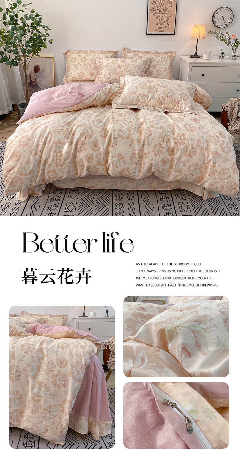 商品名称:橙艺家居 2024新款铂金柔棉全棉印花四件套 暮云花卉