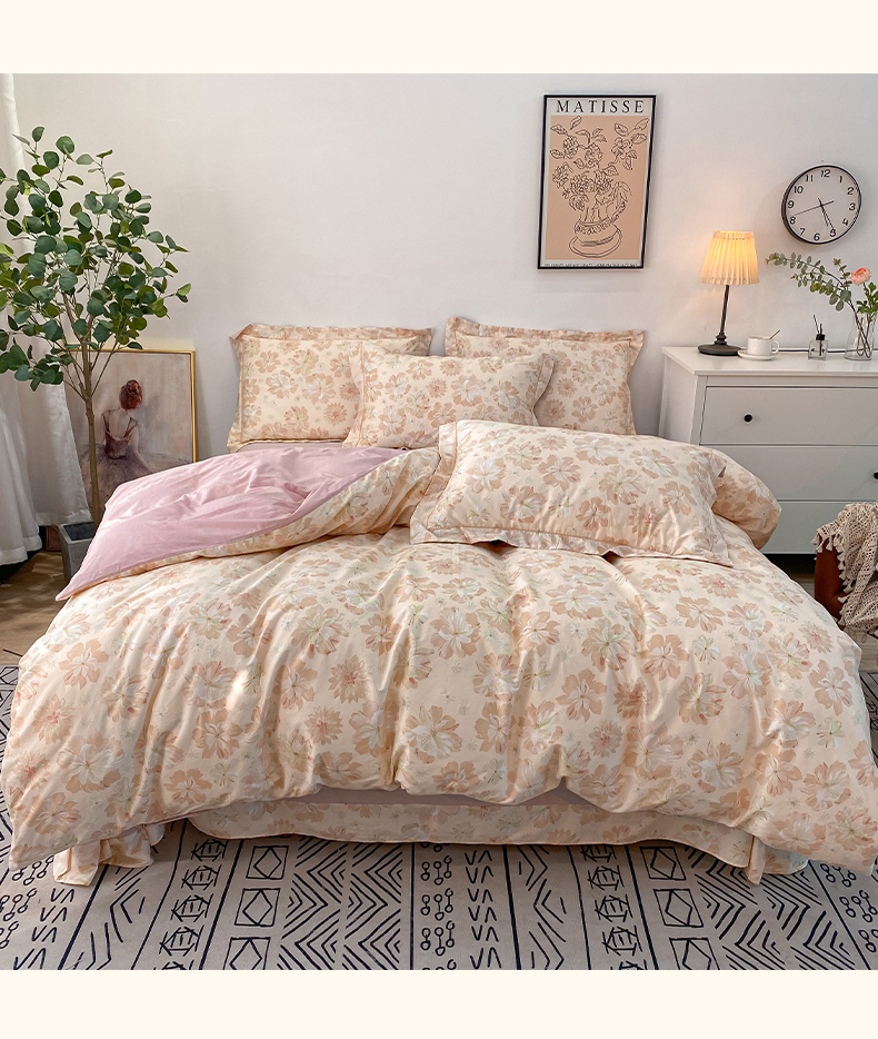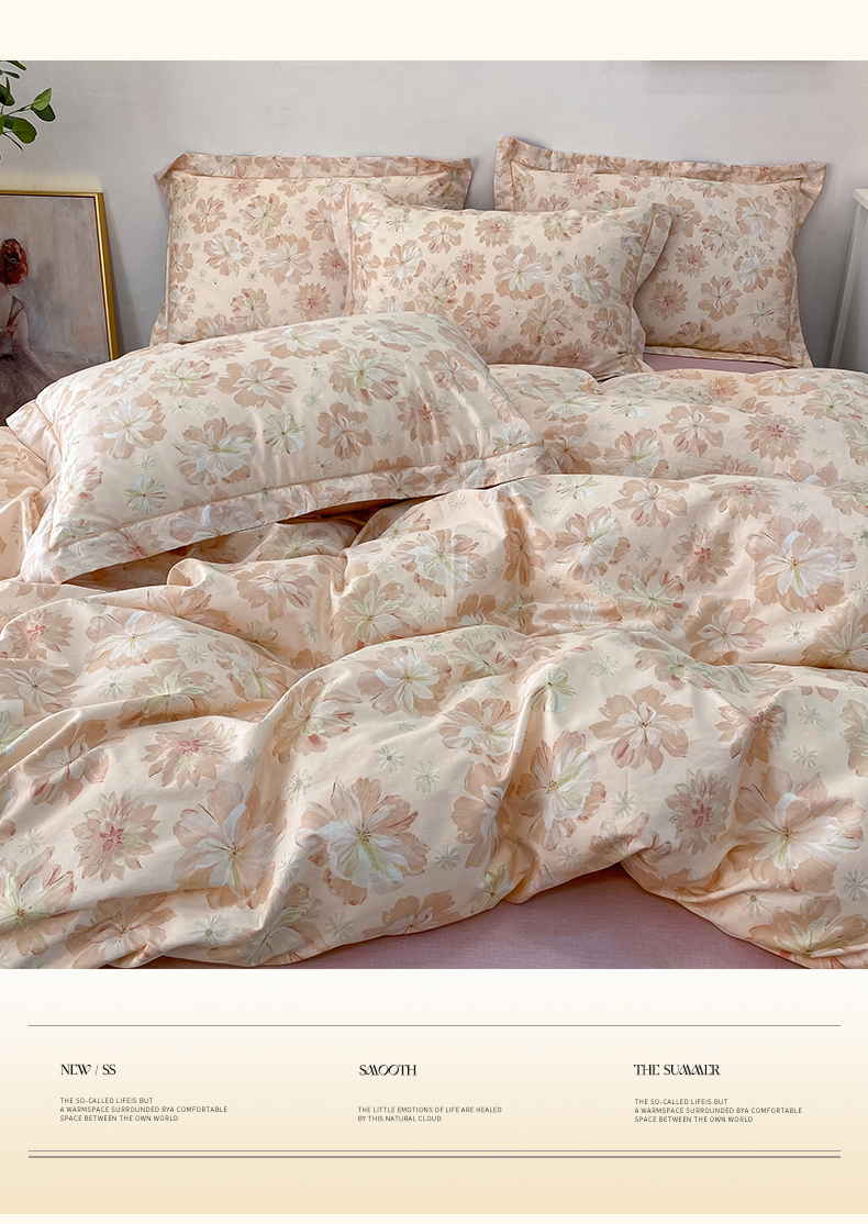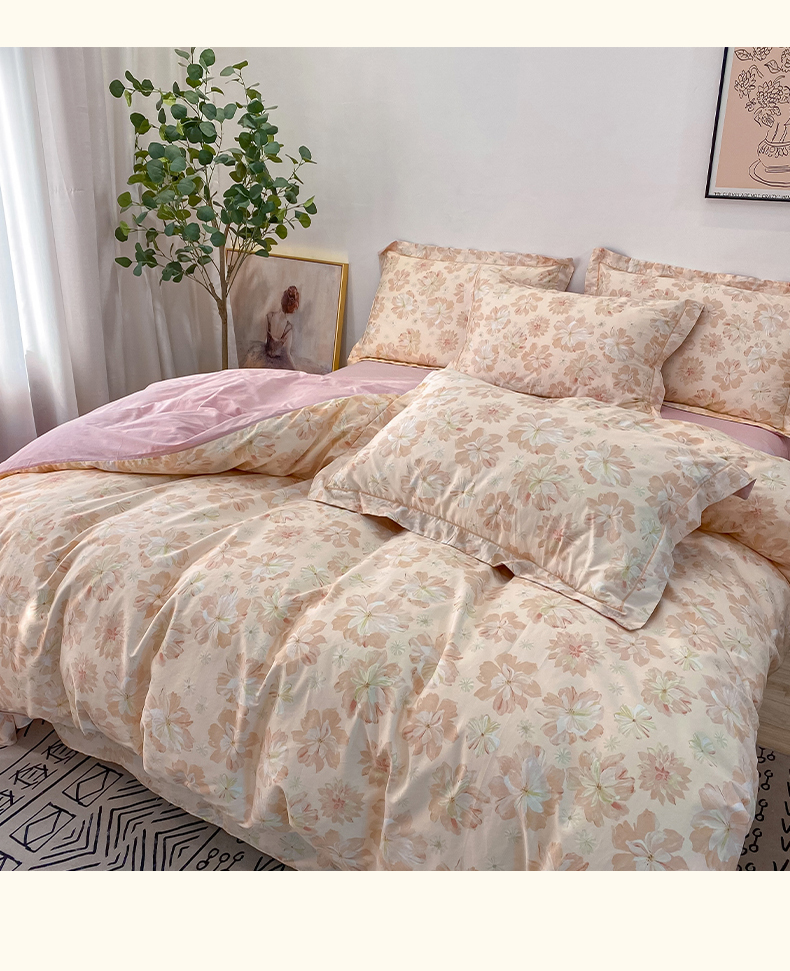 橙艺家居 2024新款铂金柔棉全棉印花四件套 暮云花卉