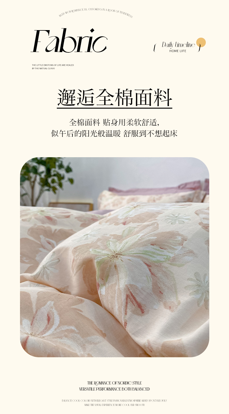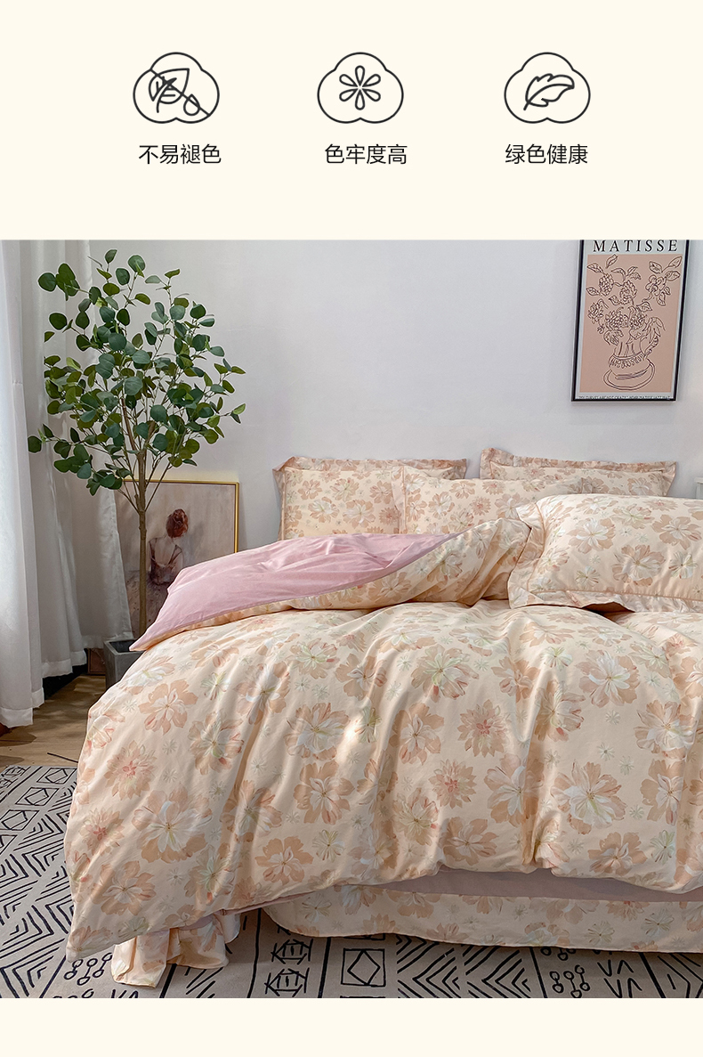 (总)橙艺家居 2026新款丝光铂金云棉印花四件套 本店线上严格控价,券后、活动后标准不得低于218元,以此类推。请各位老爷严格遵守,以免低价后再调整价格,影响链接权重,花朝拾露-紫,花田诗梦-粉,花颜外-粉,蔓月-紫,梦叶集-粉,慕枝下-绿,千叶密语-粉,闻栖-绿,雅莹-绿,叶间绒雪-兰,叶木槿-米,予她-粉,自然低语-绿,芙晚,奈亚,婉情-灰
