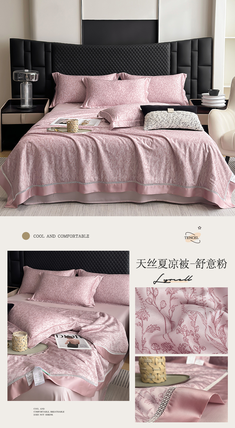 商品名称:娇逸家居 2025新款50支印花莱赛尔天丝夏被镂空款花边夏凉被 舒意-粉