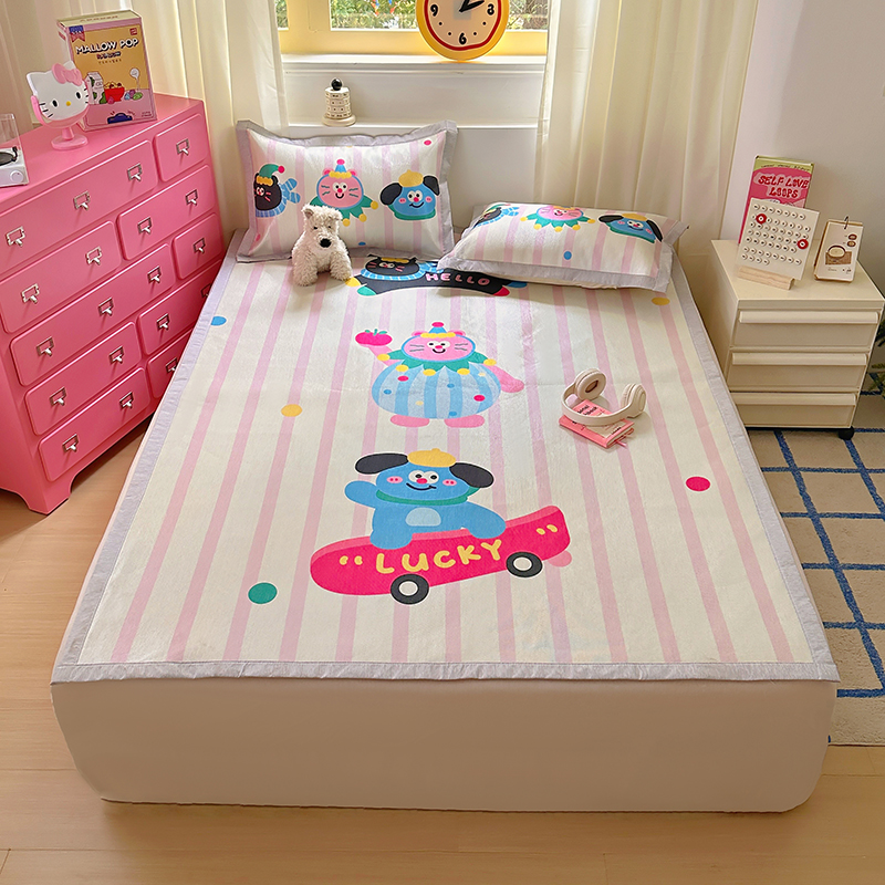 商品名称:希诺2025新款大版卡通凉席冰丝席三件套 条纹派对