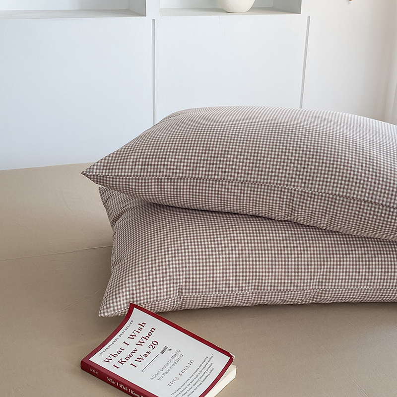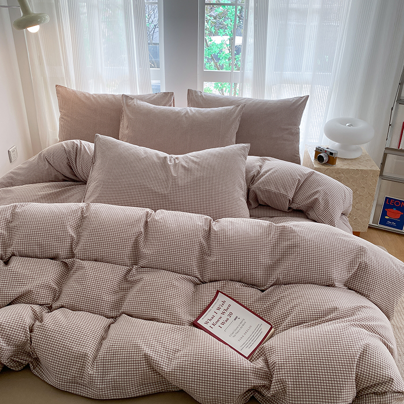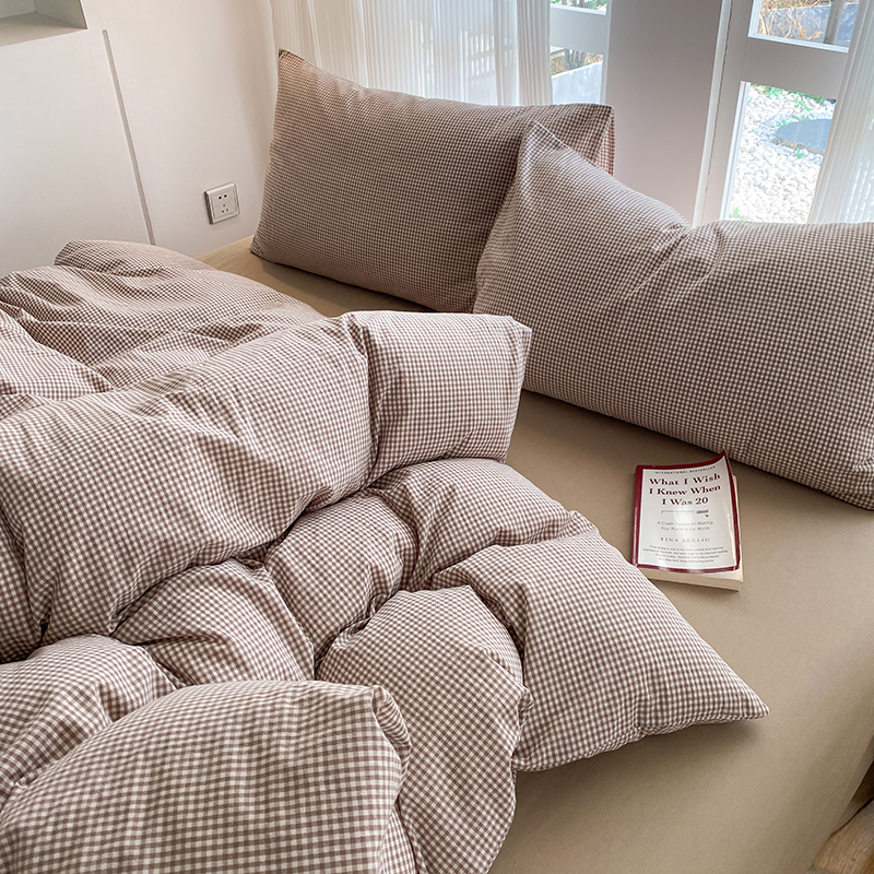 商品名称:尚品本色 2024新款简约风水洗棉格子条纹系列四件套米密格