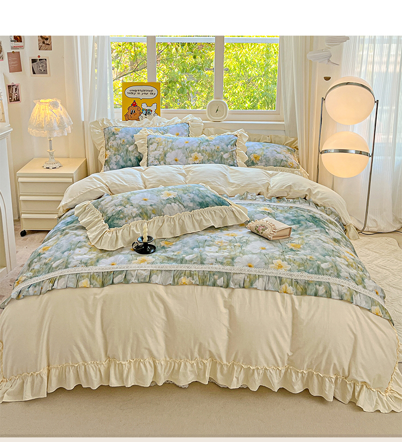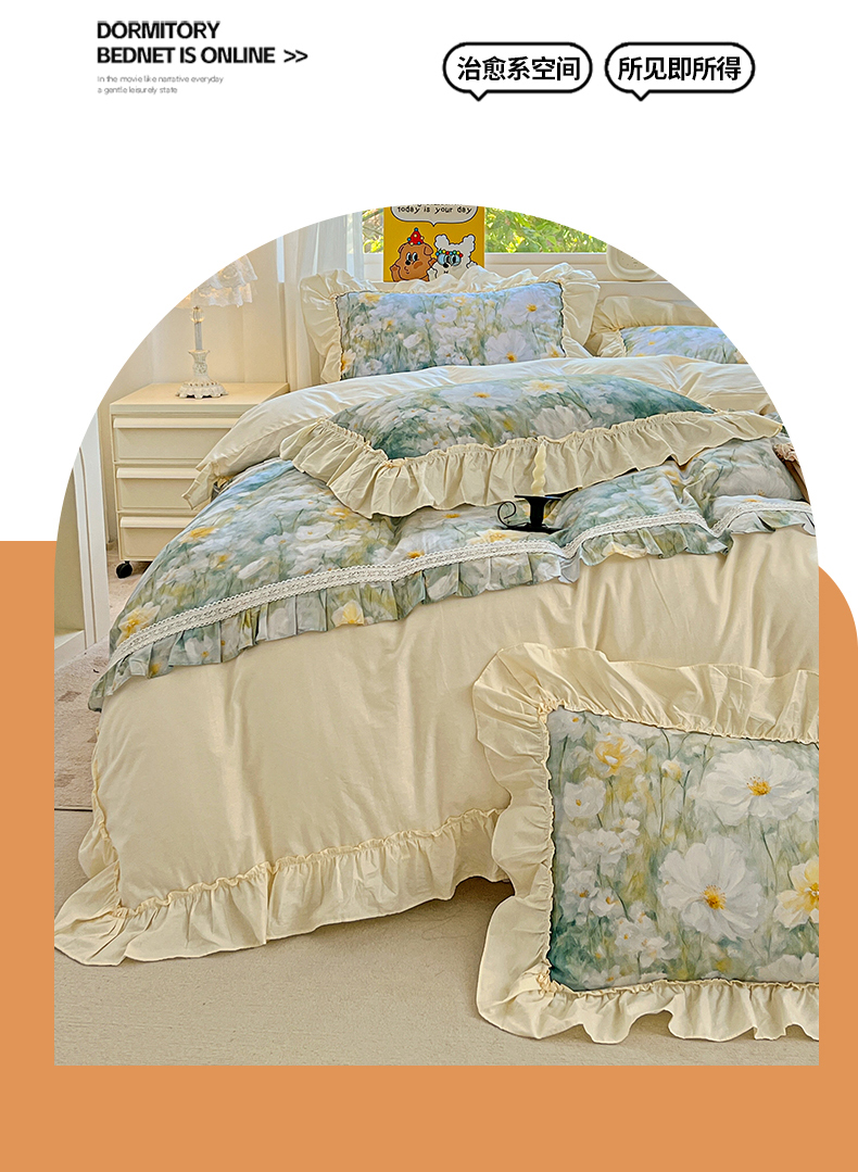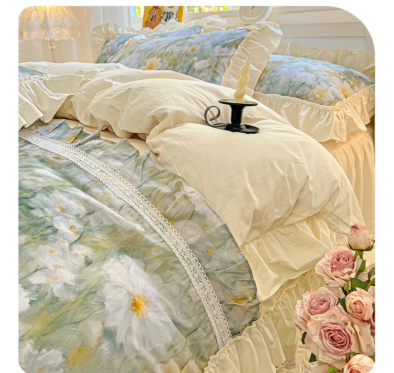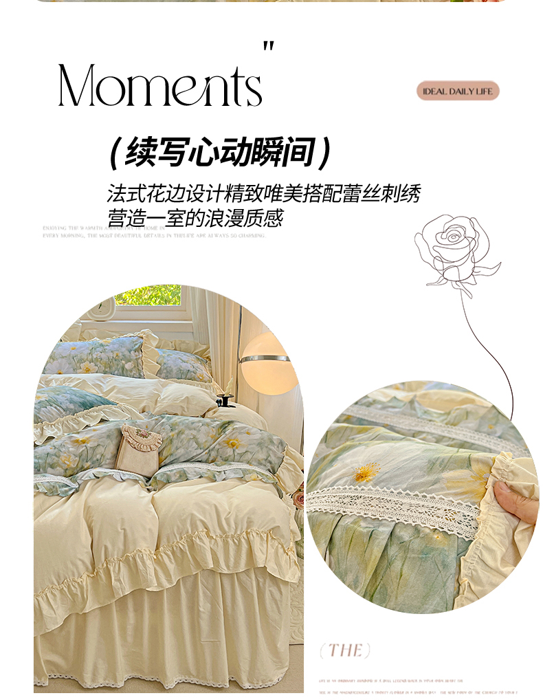 商品名称:迪欧芙2025新款全棉法式数码印花床裙四件套 夏日花语