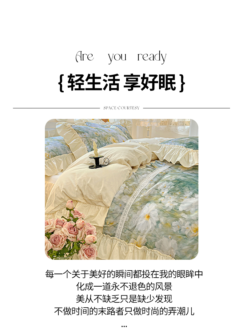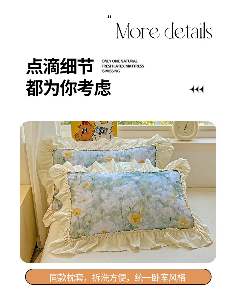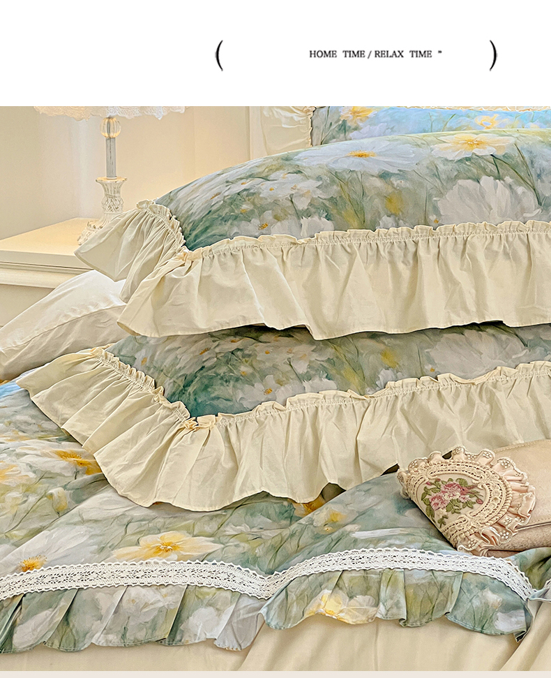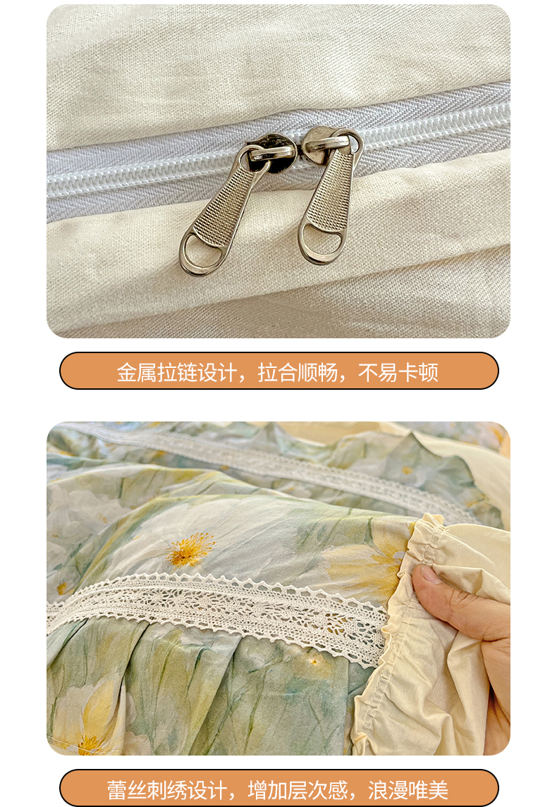 商品名称:迪欧芙2025新款全棉法式数码印花床裙四件套 夏日花语