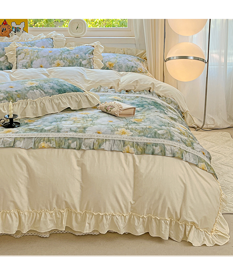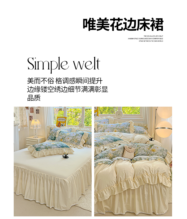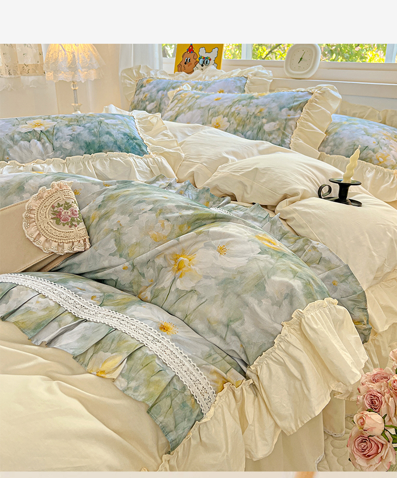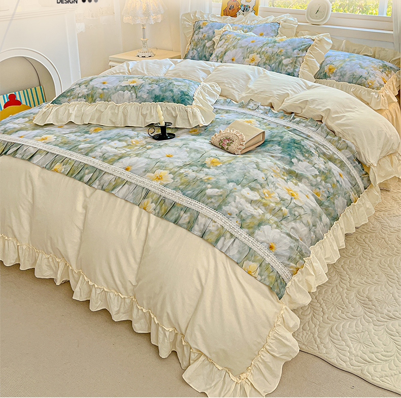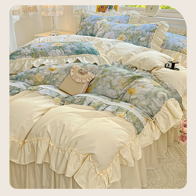 迪欧芙2025新款全棉法式数码印花床裙四件套 夏日花语