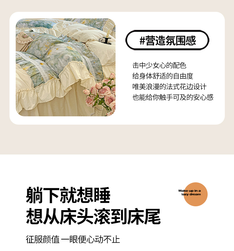 (总)迪欧芙2025新款全棉法式数码印花床裙四件套,花开满满,玫瑰花开,夏日花语