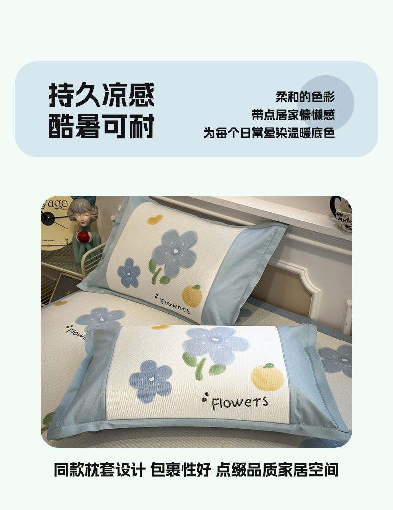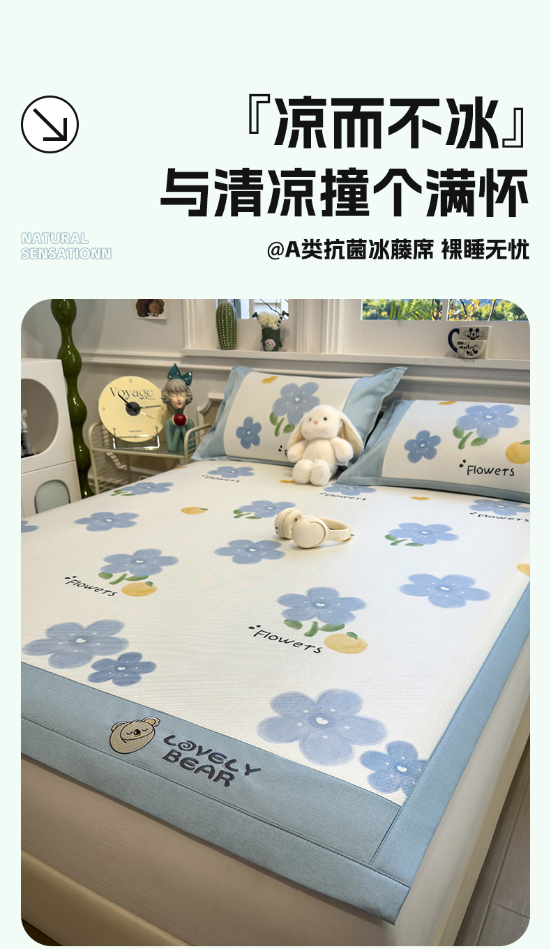 当前位置: 91家纺网 > 商品网购 > 床上用品 > 凉席 > 藤席 > 全季家居 2025新款A类抗菌防螨数码印花冰藤席凉席席子 花朵 床席
