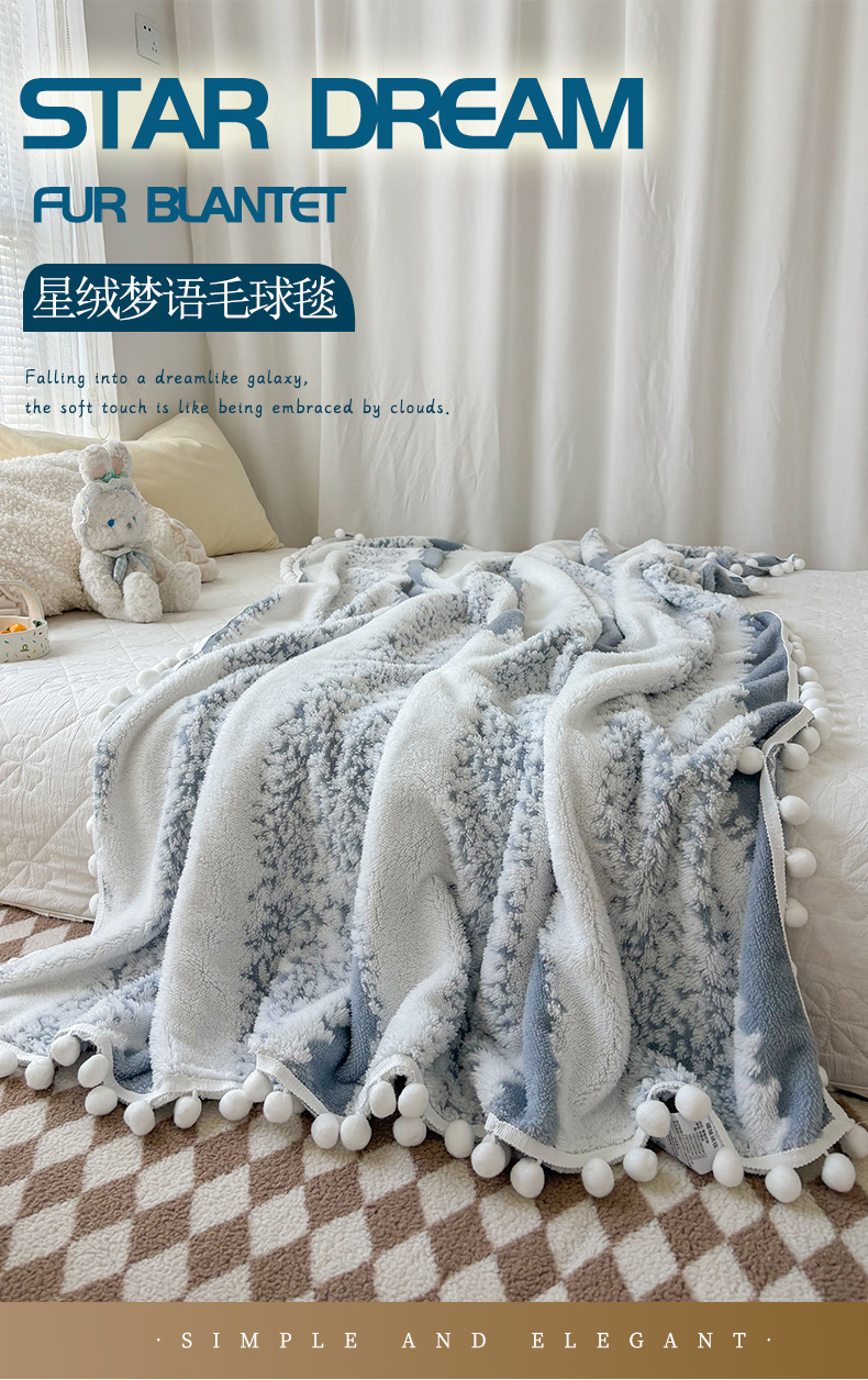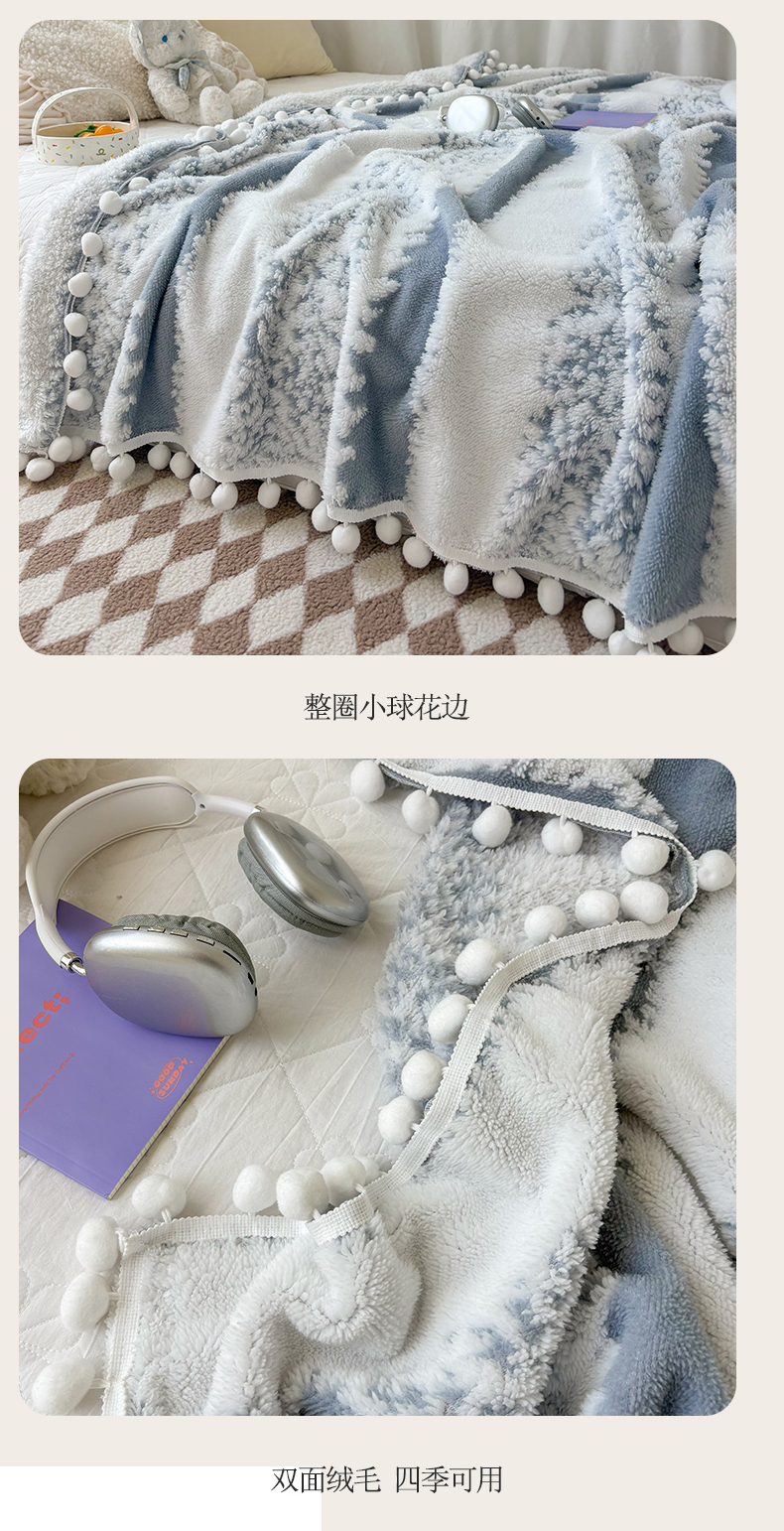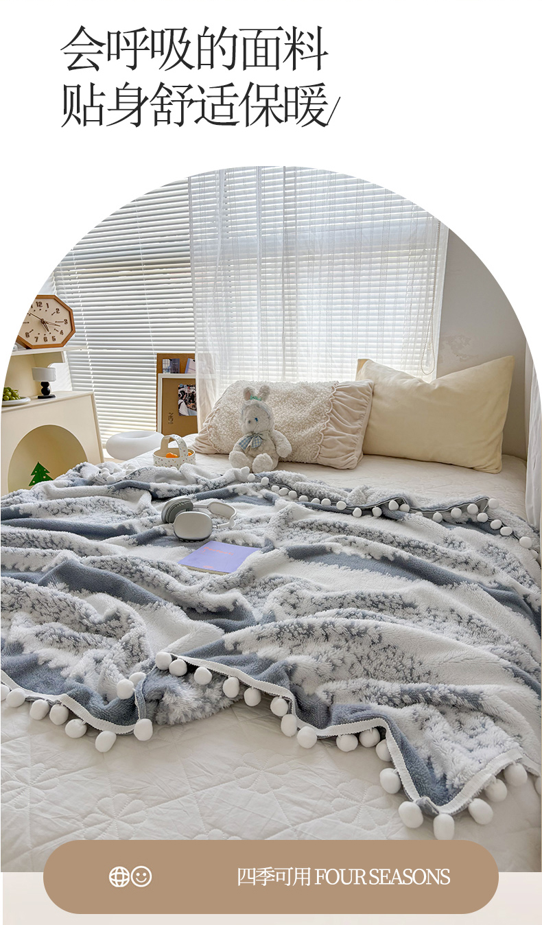 (总)潮邦创意家居 2025新款 奶芙绒流苏球毛毯,薄荷绿,焦糖咖,绵云白,浅蓝灰,深暮灰,甜莓粉