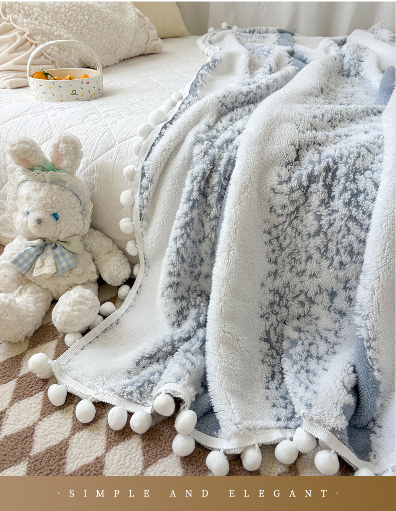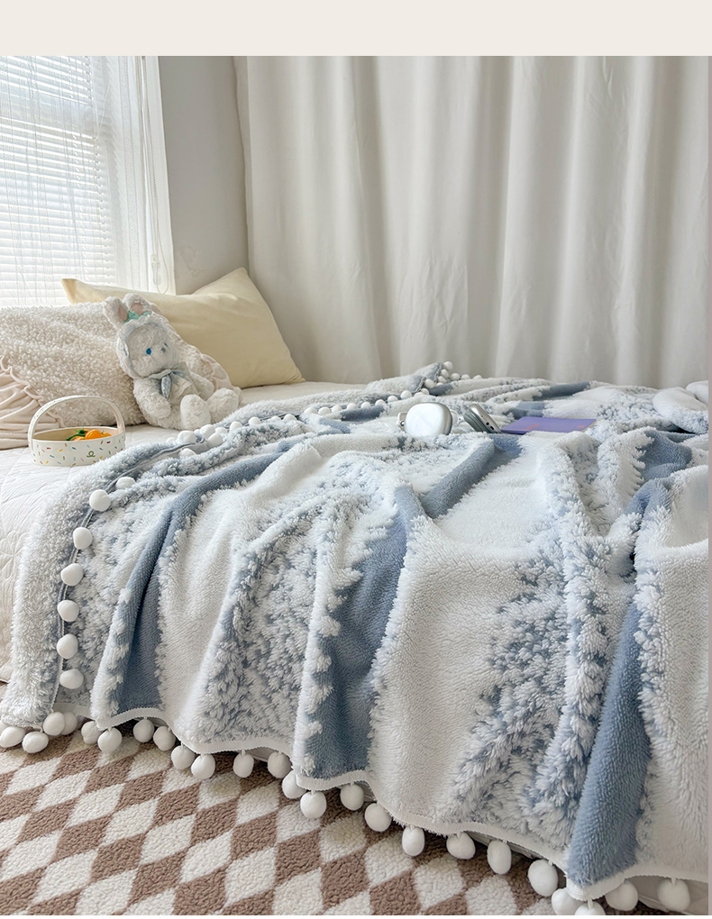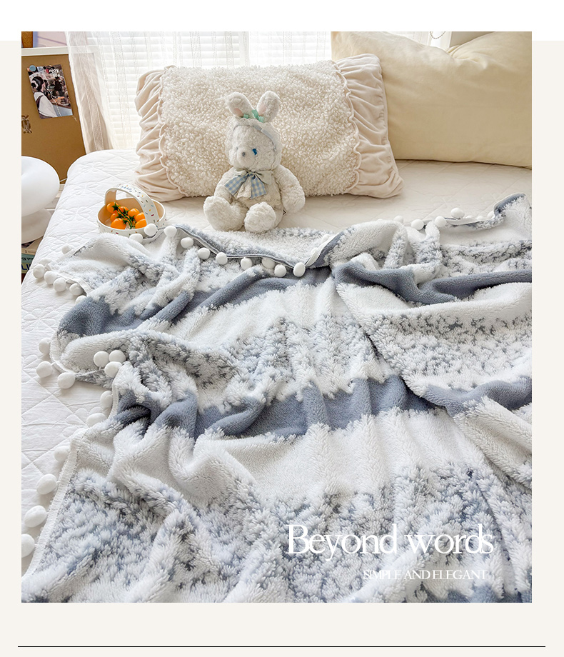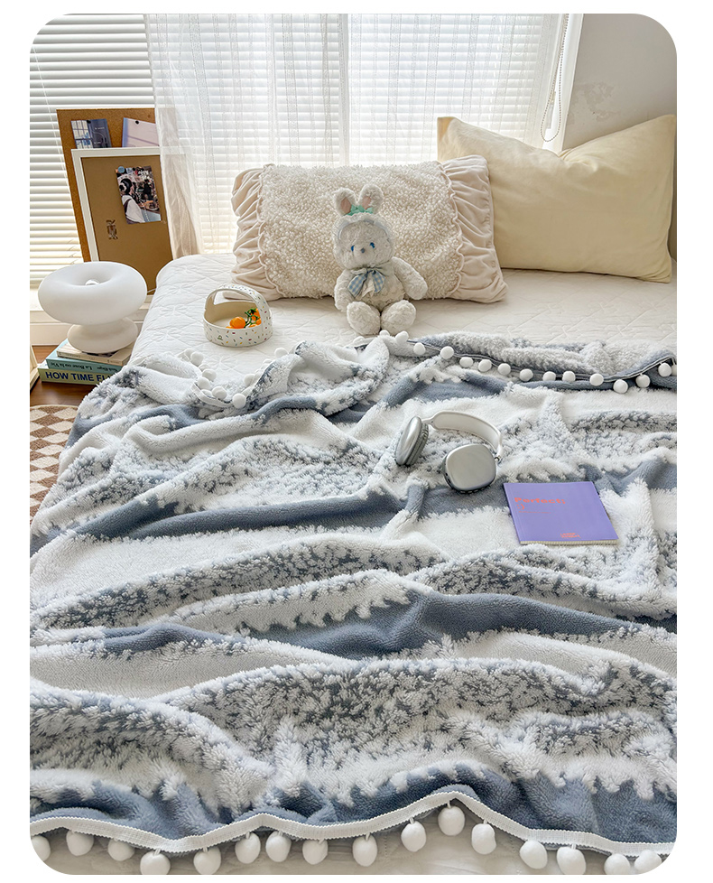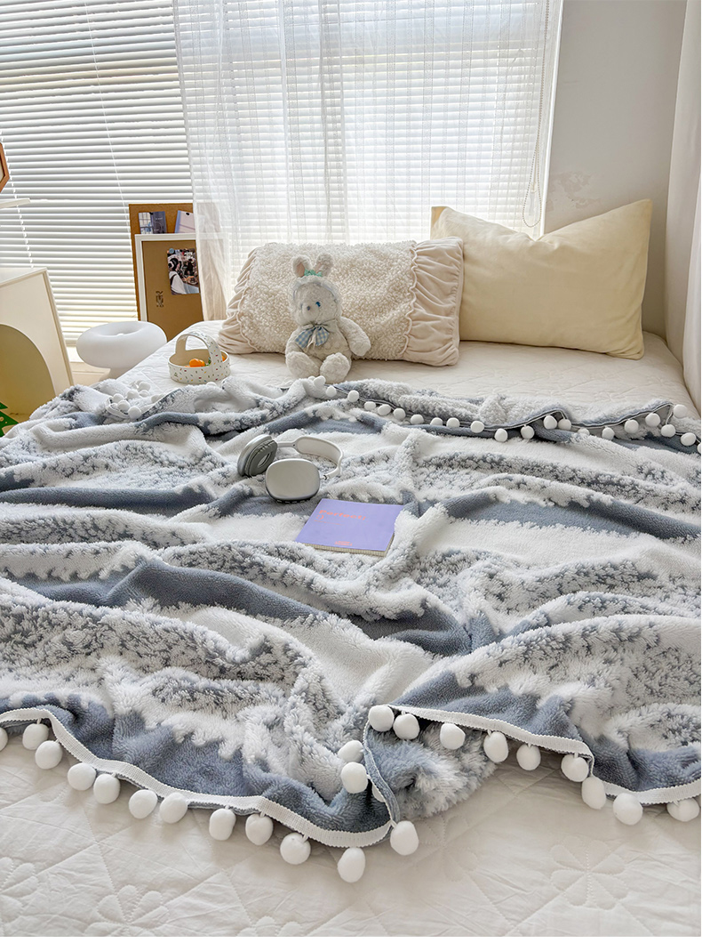 (总)潮邦创意家居 2025新款 奶芙绒流苏球毛毯,薄荷绿,焦糖咖,绵云白,浅蓝灰,深暮灰,甜莓粉