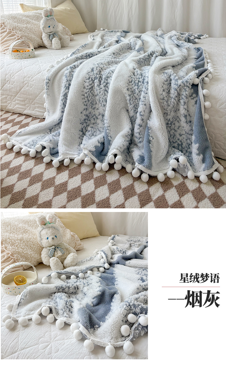 商品名称:潮邦创意家居 【标准250G】阳离子双色提花星绒梦语小球毯可供跨境电商可压缩 星绒梦语烟灰