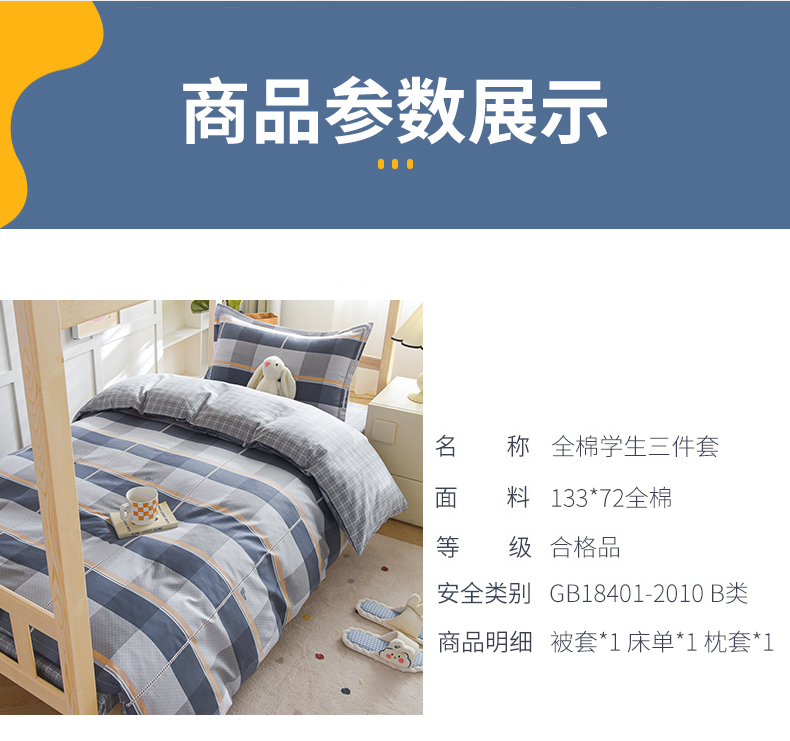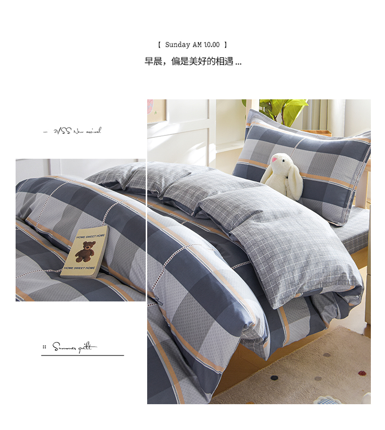 商品名称:鑫宇2025新款13372全棉学生宿舍上下铺三件套床单款床笠款可定制 夏曲-灰