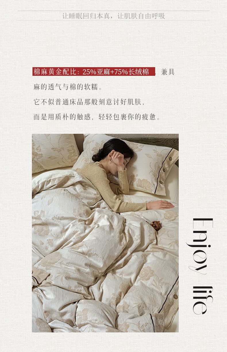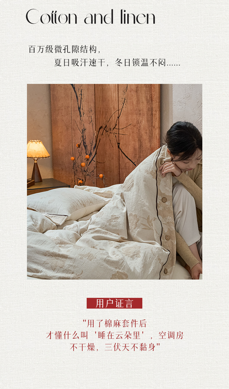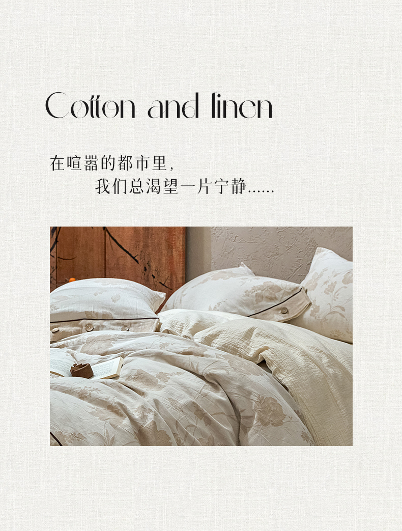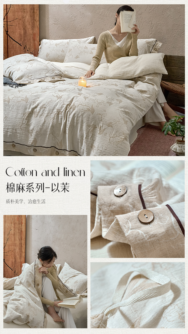 春皖家纺 2025新款棉麻大提花双层纱系列四件套-纽扣款 浮锦