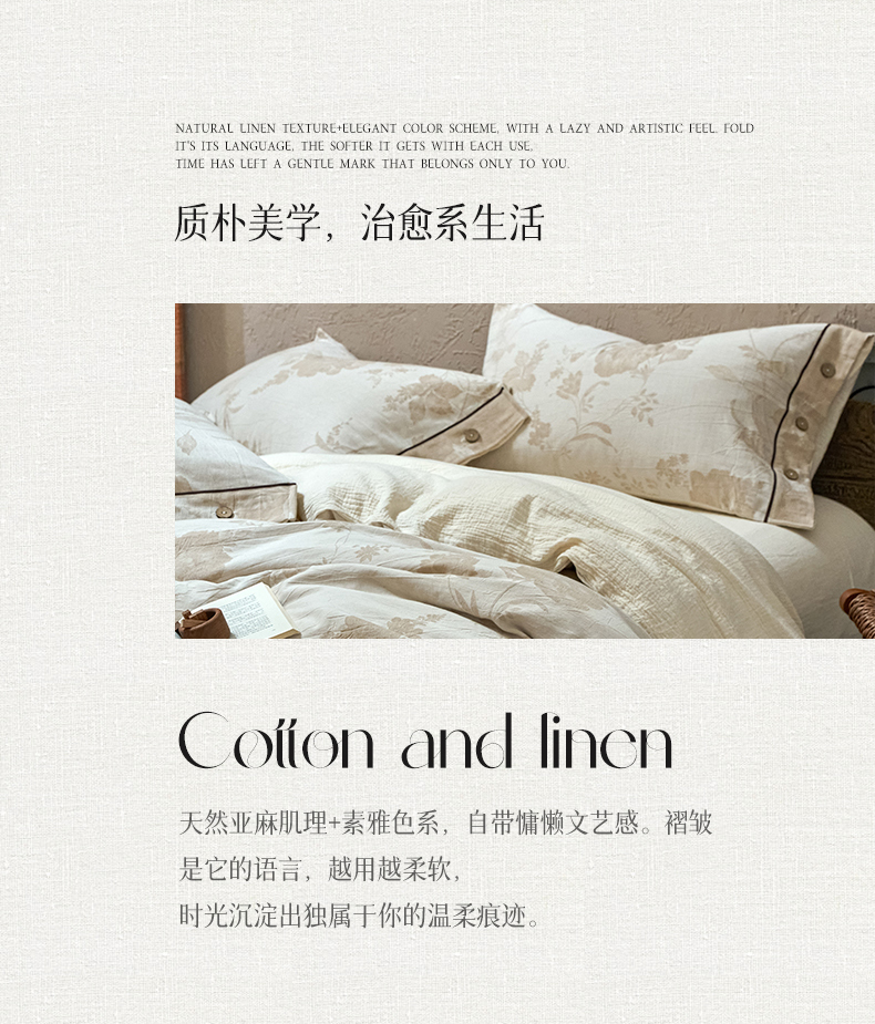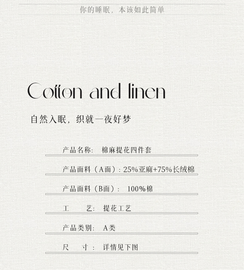 商品名称:春皖家纺 2025新款棉麻大提花双层纱系列四件套-纽扣款 浮锦