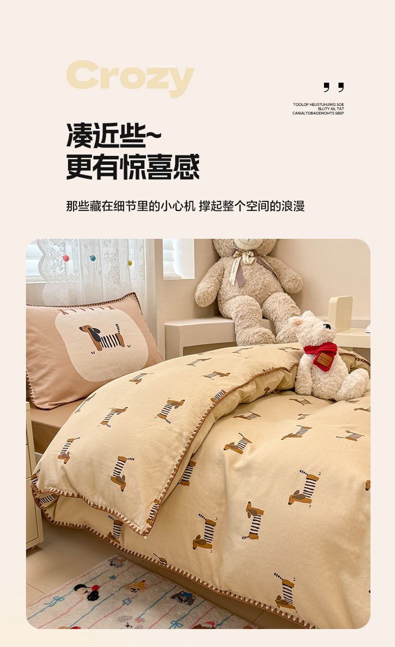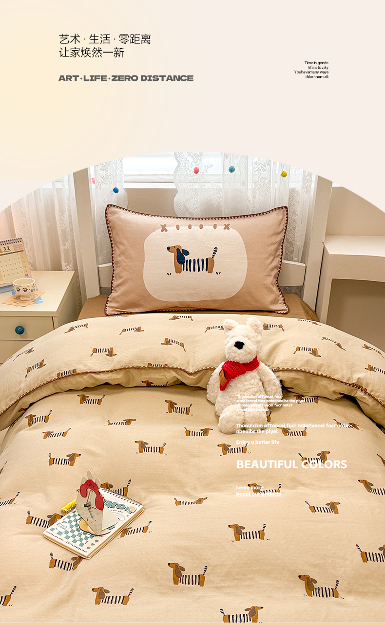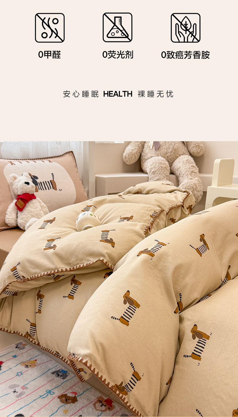 当前位置: 91家纺网 > 商品网购 > 床品套件 > 三件套 > 沐辰 2025新款全棉双层纱A类贝壳边学生床三件套 棒棒小狗