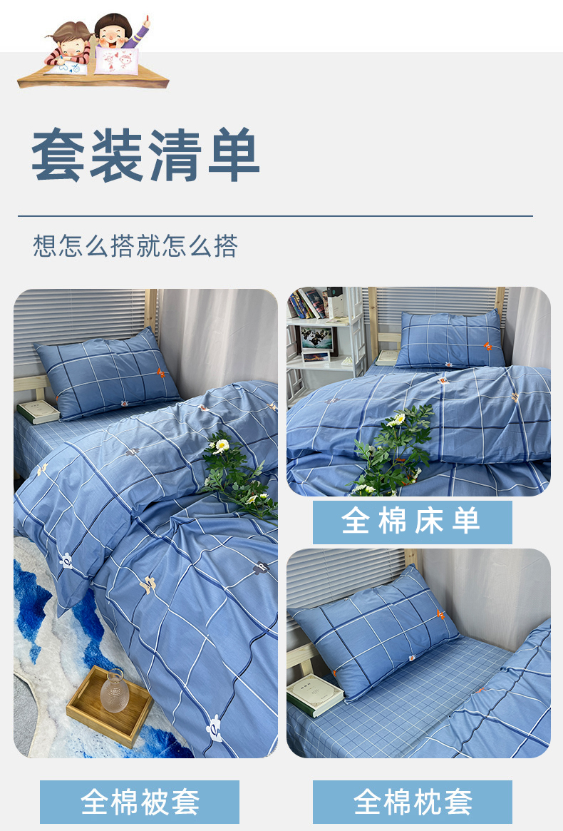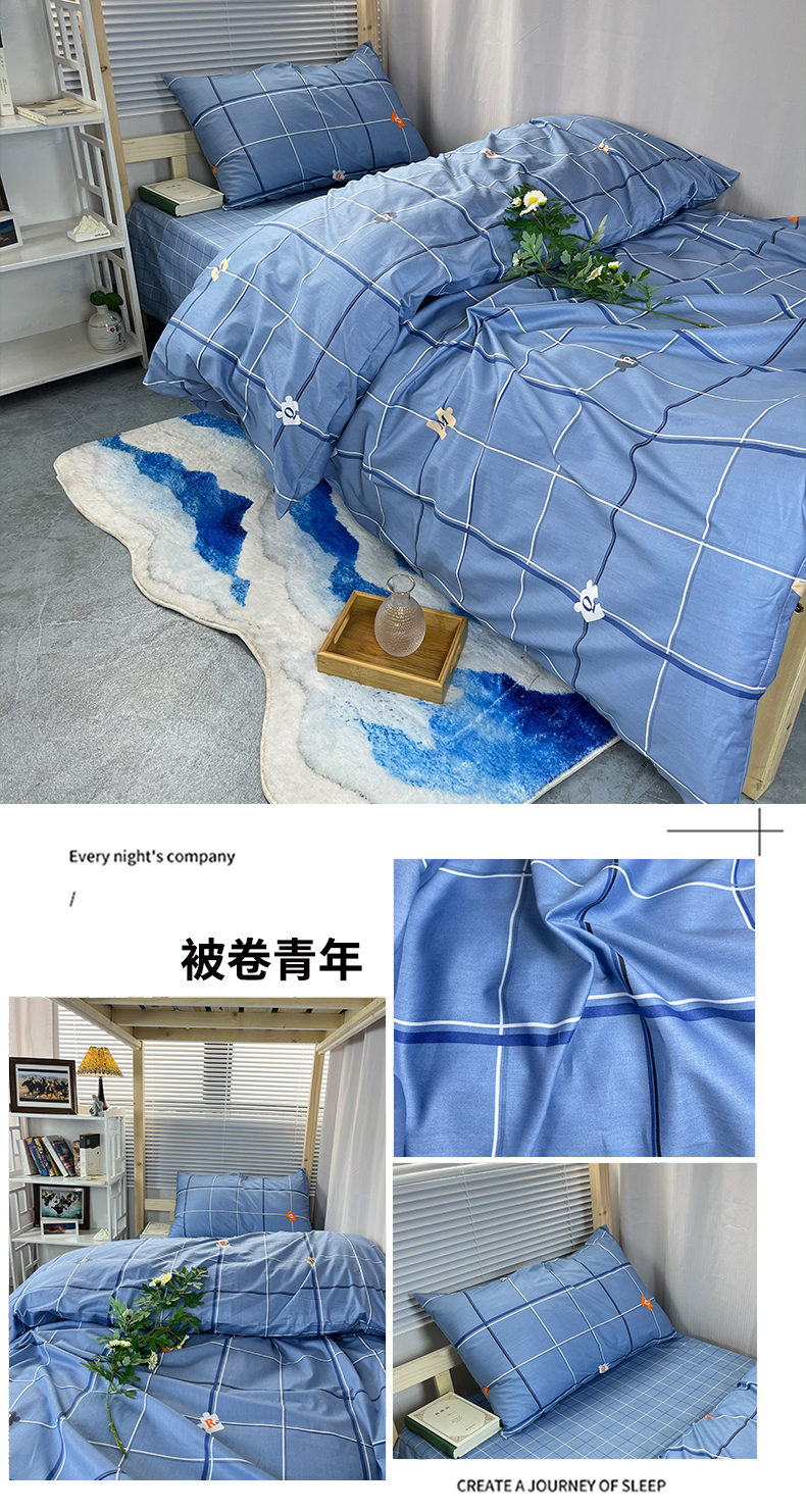 当前位置: 91家纺网 > 商品网购 > 床品套件 > 三件套 > 云梦2025新款全棉印花学生宿舍套件 被卷青年