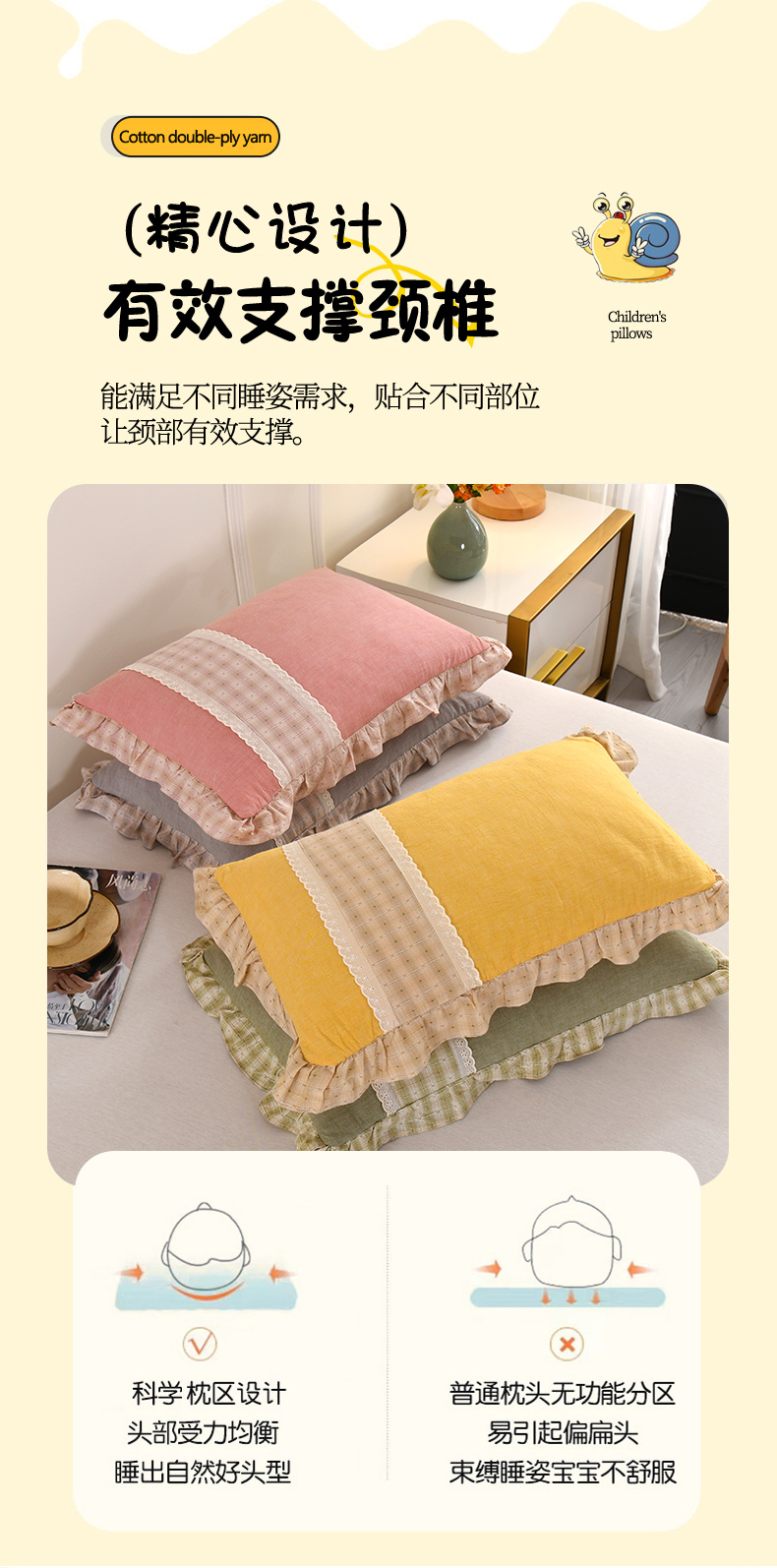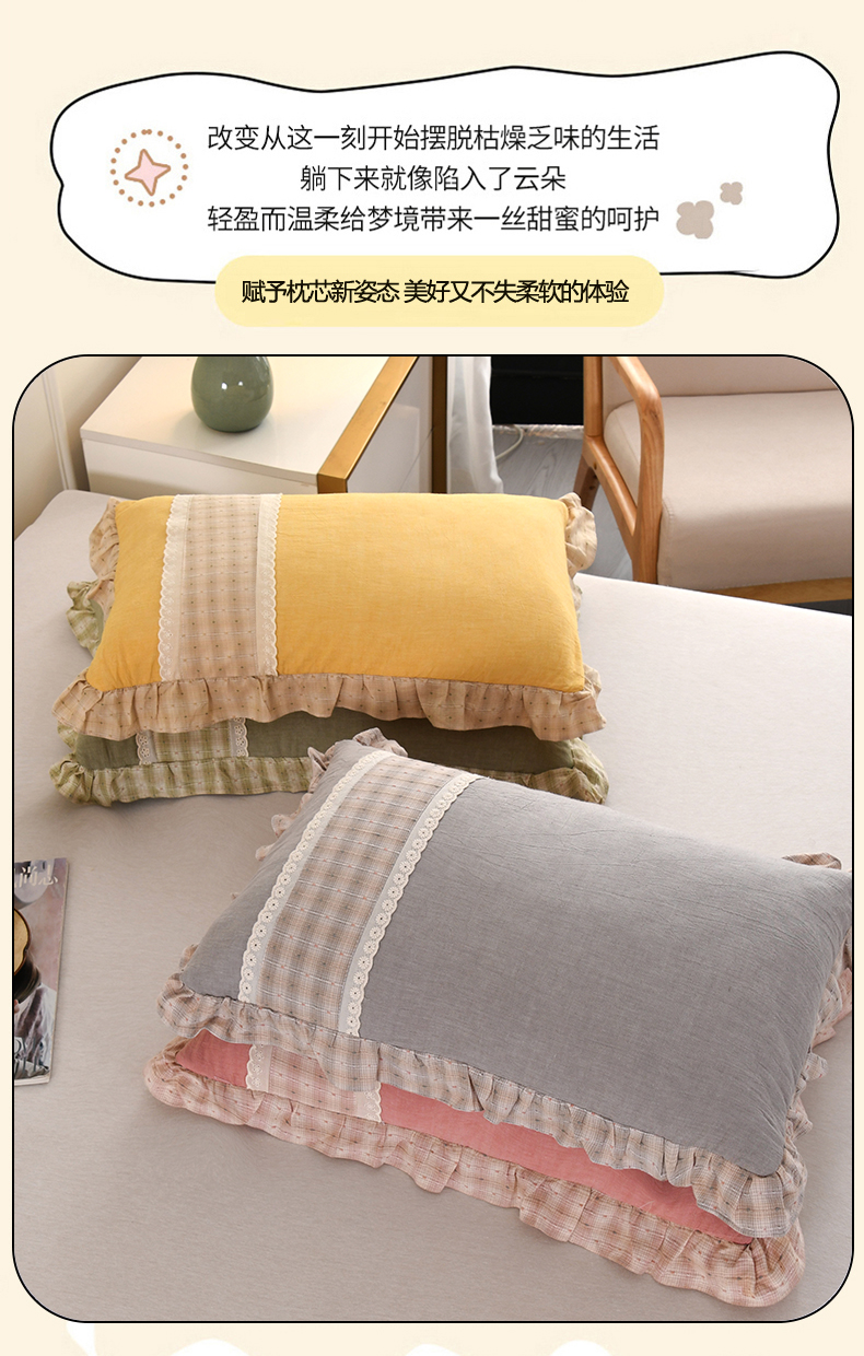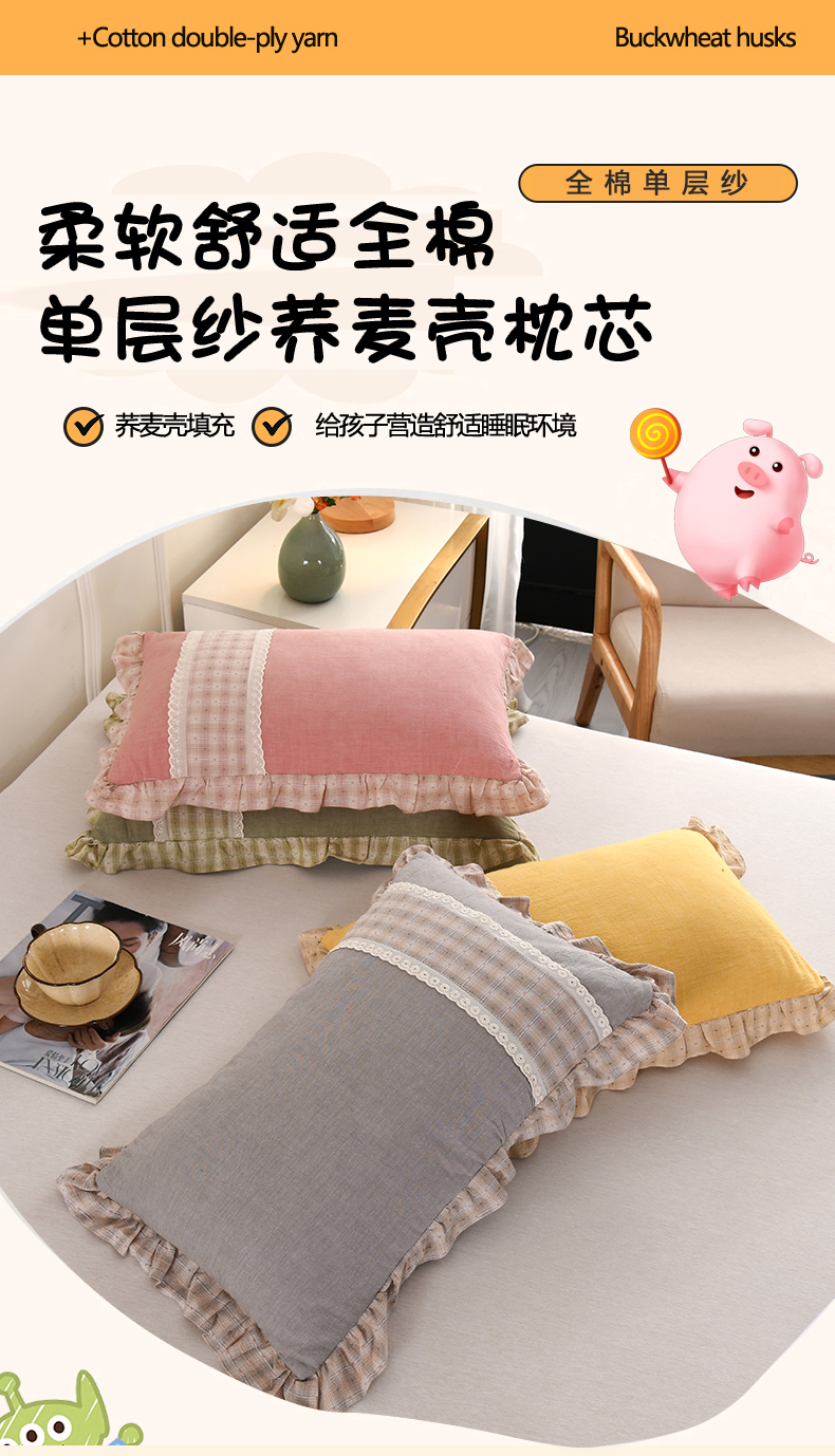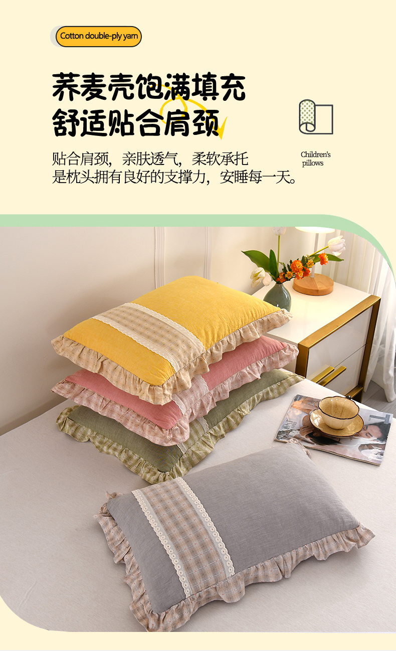 商品名称:(总)金牛枕芯 2025新款蕾丝花边枕全棉单层纱荞麦枕
