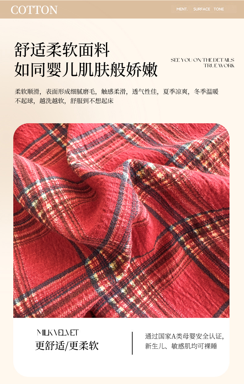 当前位置: 91家纺网 > 商品网购 > 床品套件 > 四件套 > 双层纱四件套 > 亨通家纺 2025新款复古原麻双层纱格子系列四件套 漫格温情